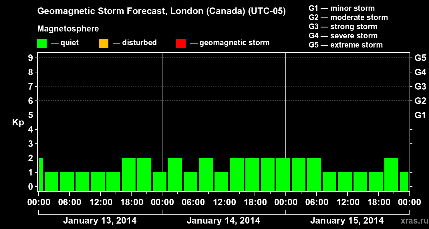 Geomagnetic storm forecast in London (Canada) for Jan 13, 2014