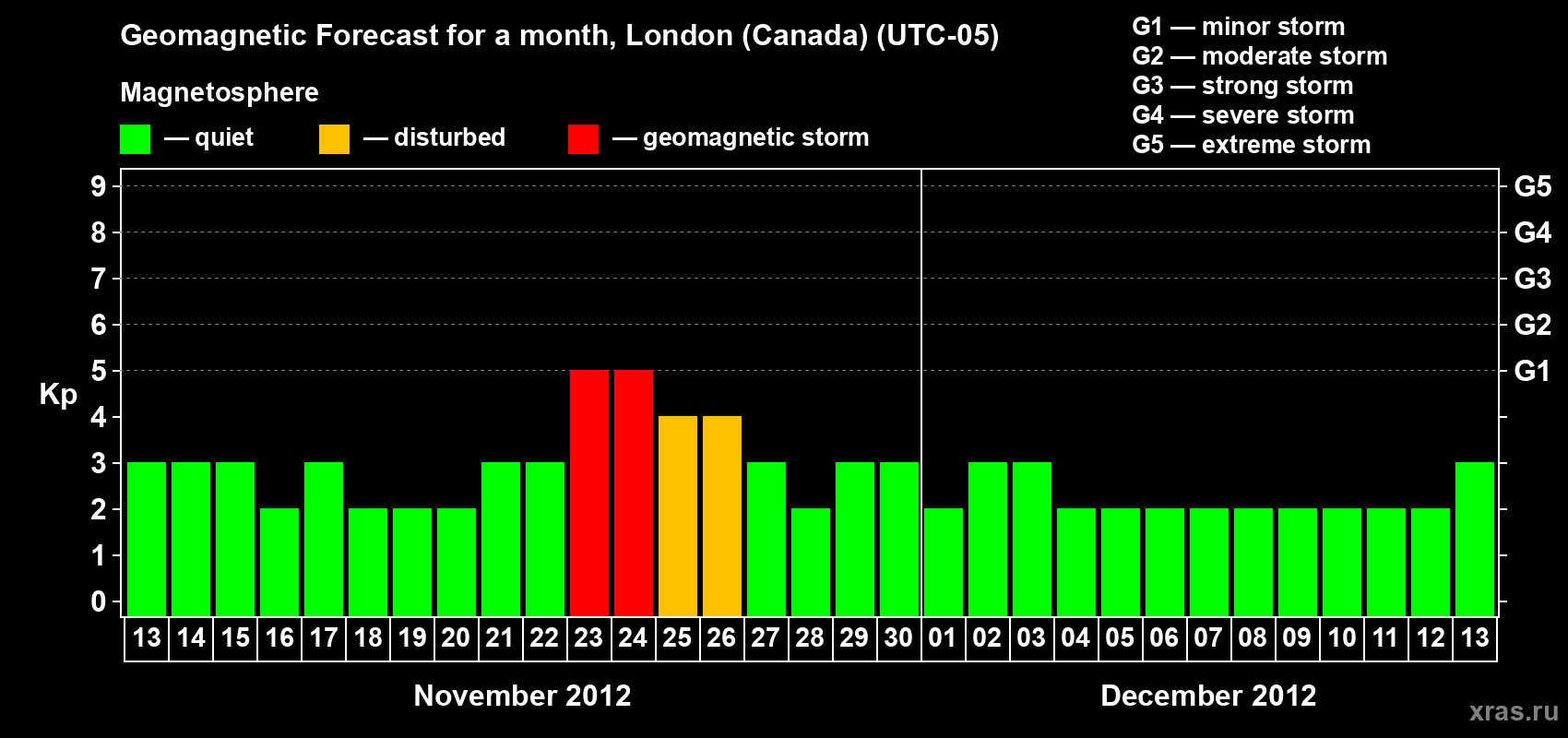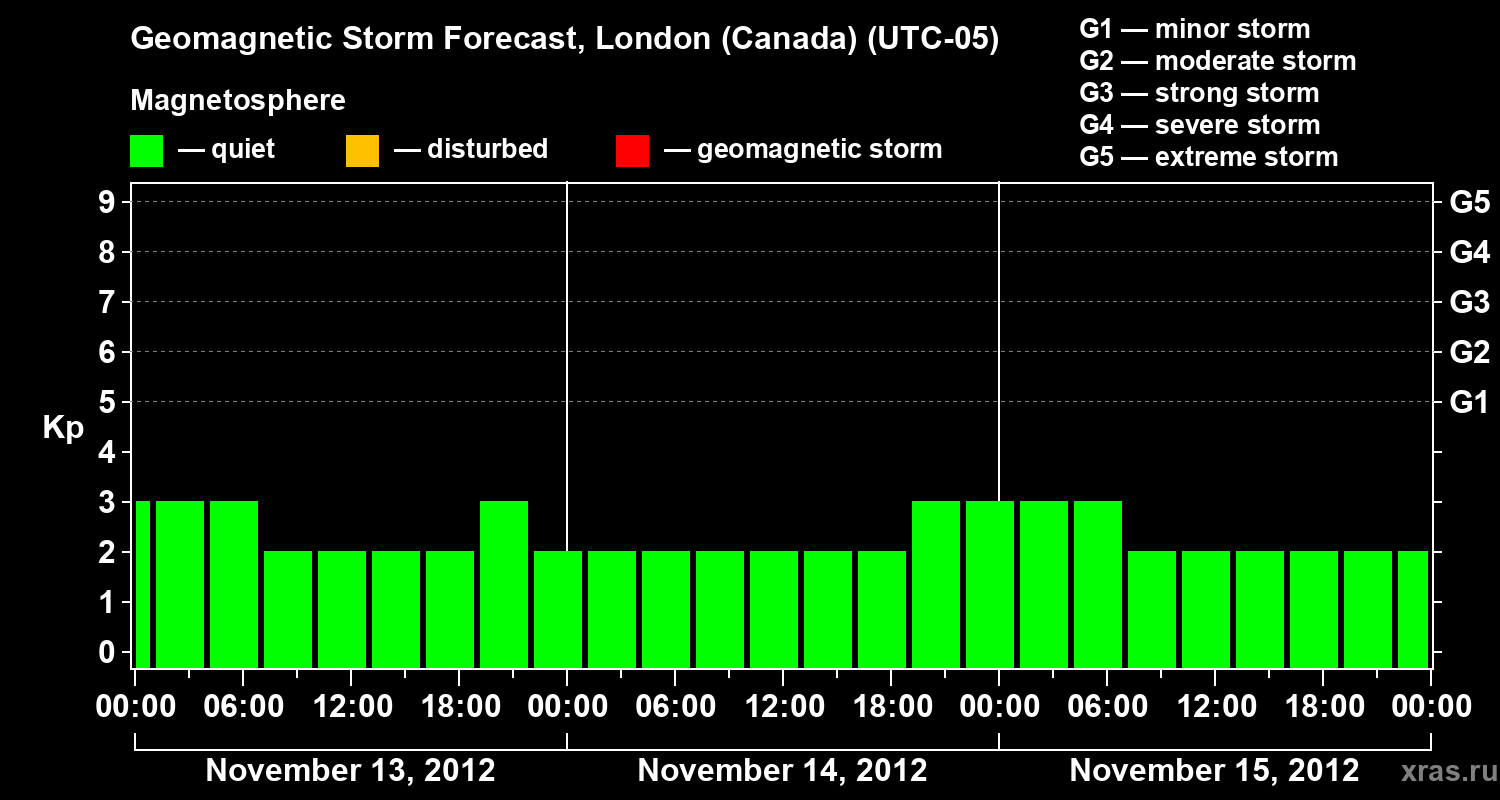 Geomagnetic storm forecast in London (Canada) for Nov 13, 2012