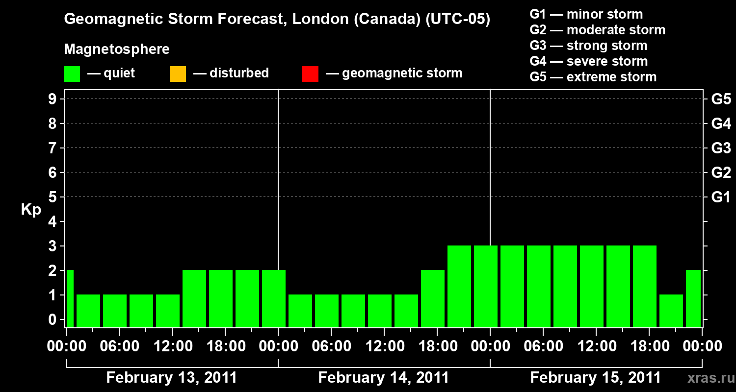 Geomagnetic storm forecast in London (Canada) for Feb 13, 2011