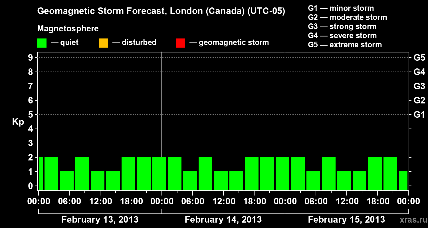 Geomagnetic storm forecast in London (Canada) for Feb 13, 2013