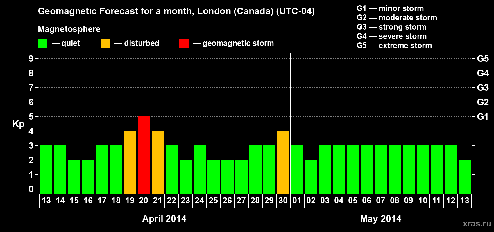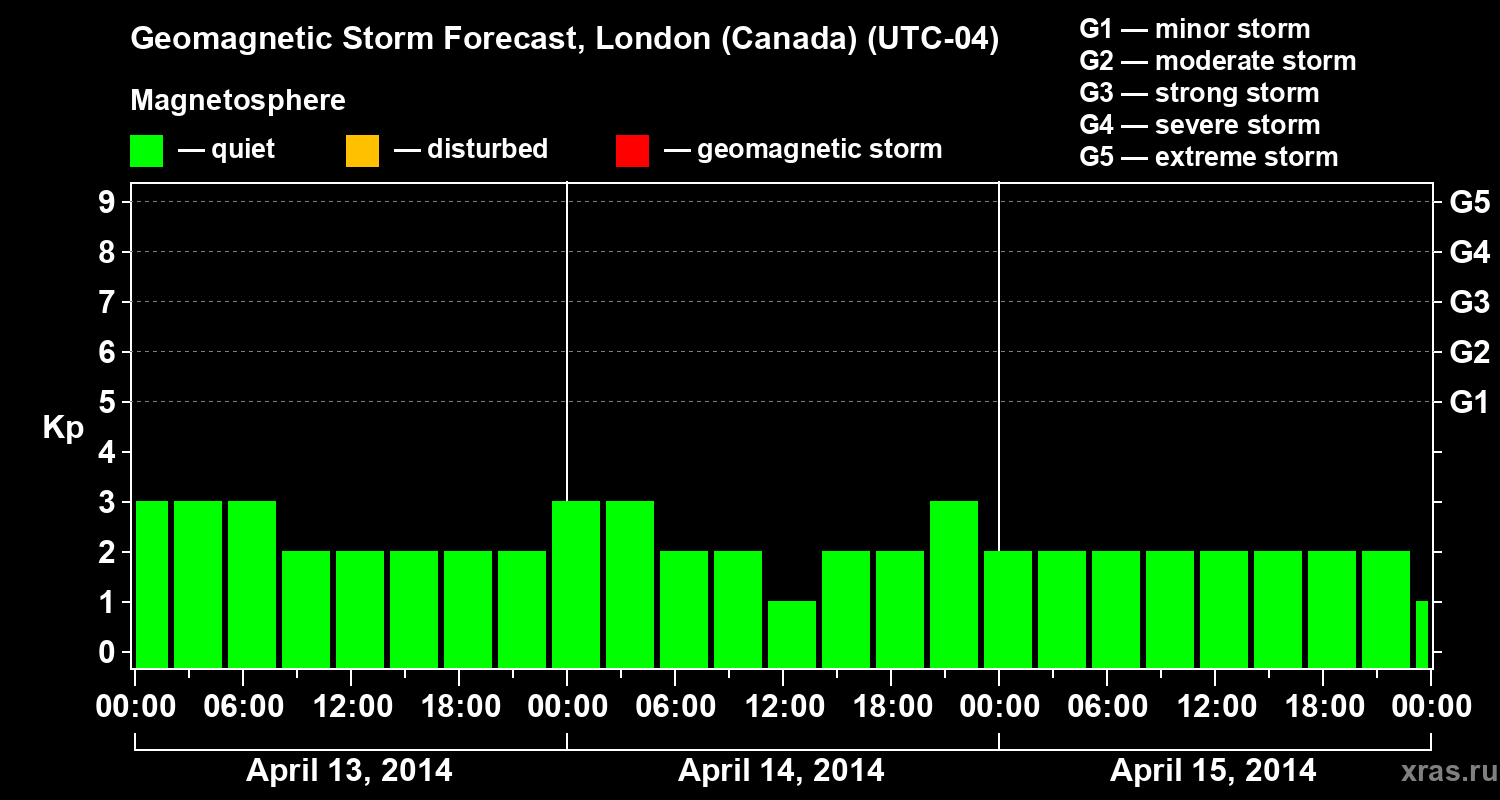 Geomagnetic storm forecast in London (Canada) for Apr 13, 2014