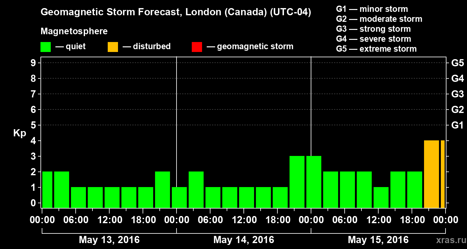 Geomagnetic storm forecast in London (Canada) for May 13, 2016