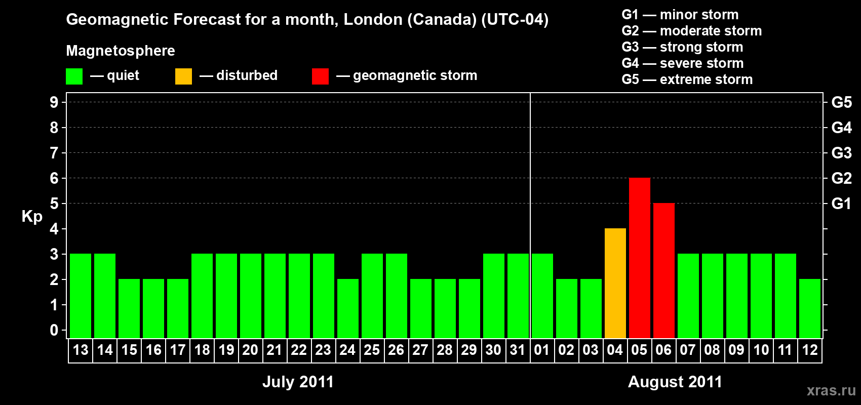 Geomagnetic storm forecast in London (Canada) for Jul 13, 2011