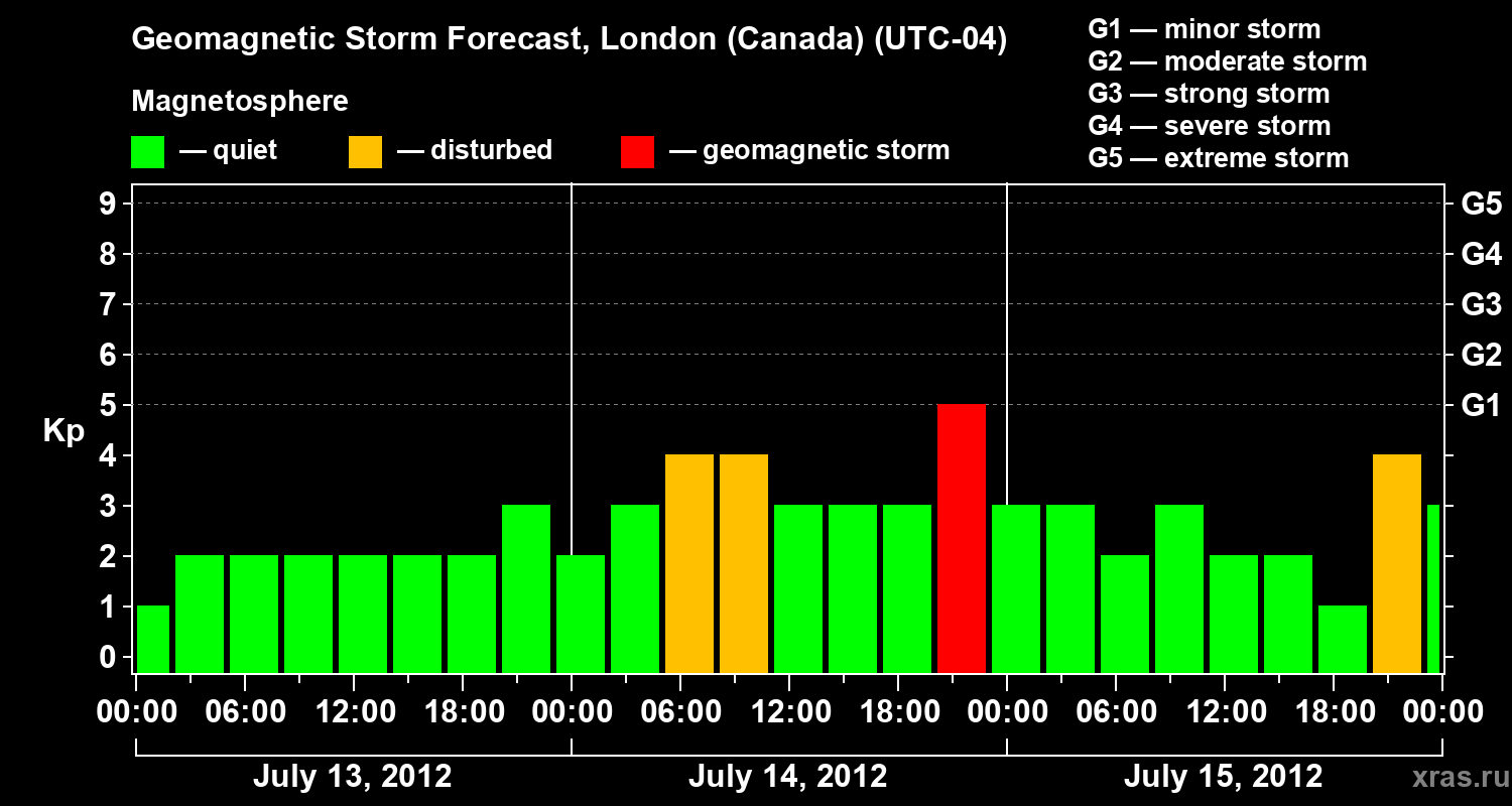 Geomagnetic storm forecast in London (Canada) for Jul 13, 2012