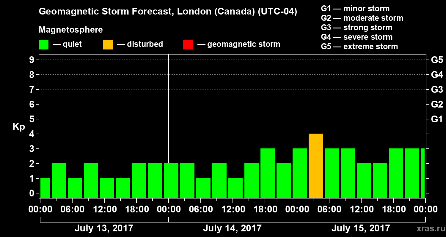 Geomagnetic storm forecast in London (Canada) for Jul 13, 2017