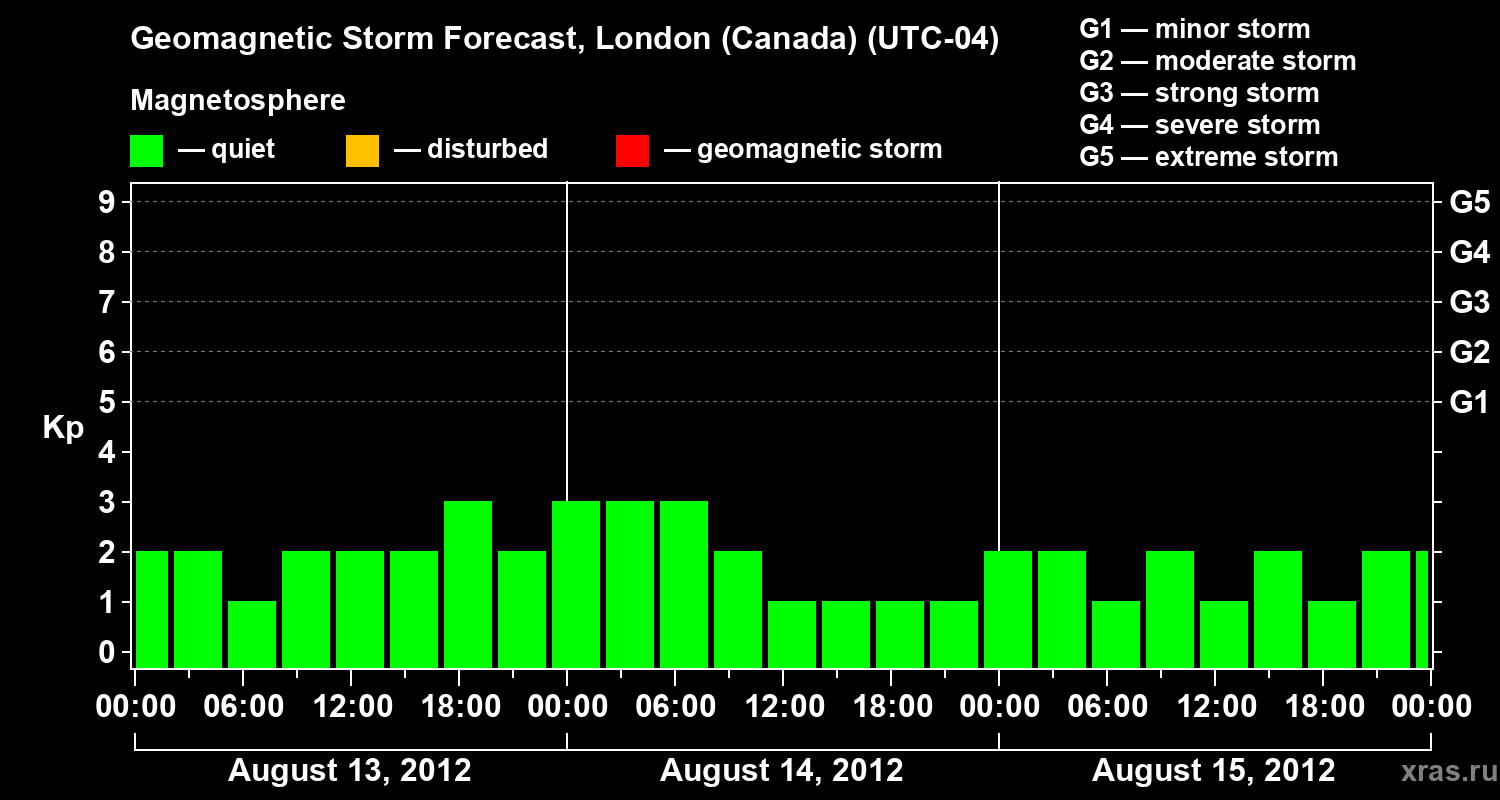 Geomagnetic storm forecast in London (Canada) for Aug 13, 2012