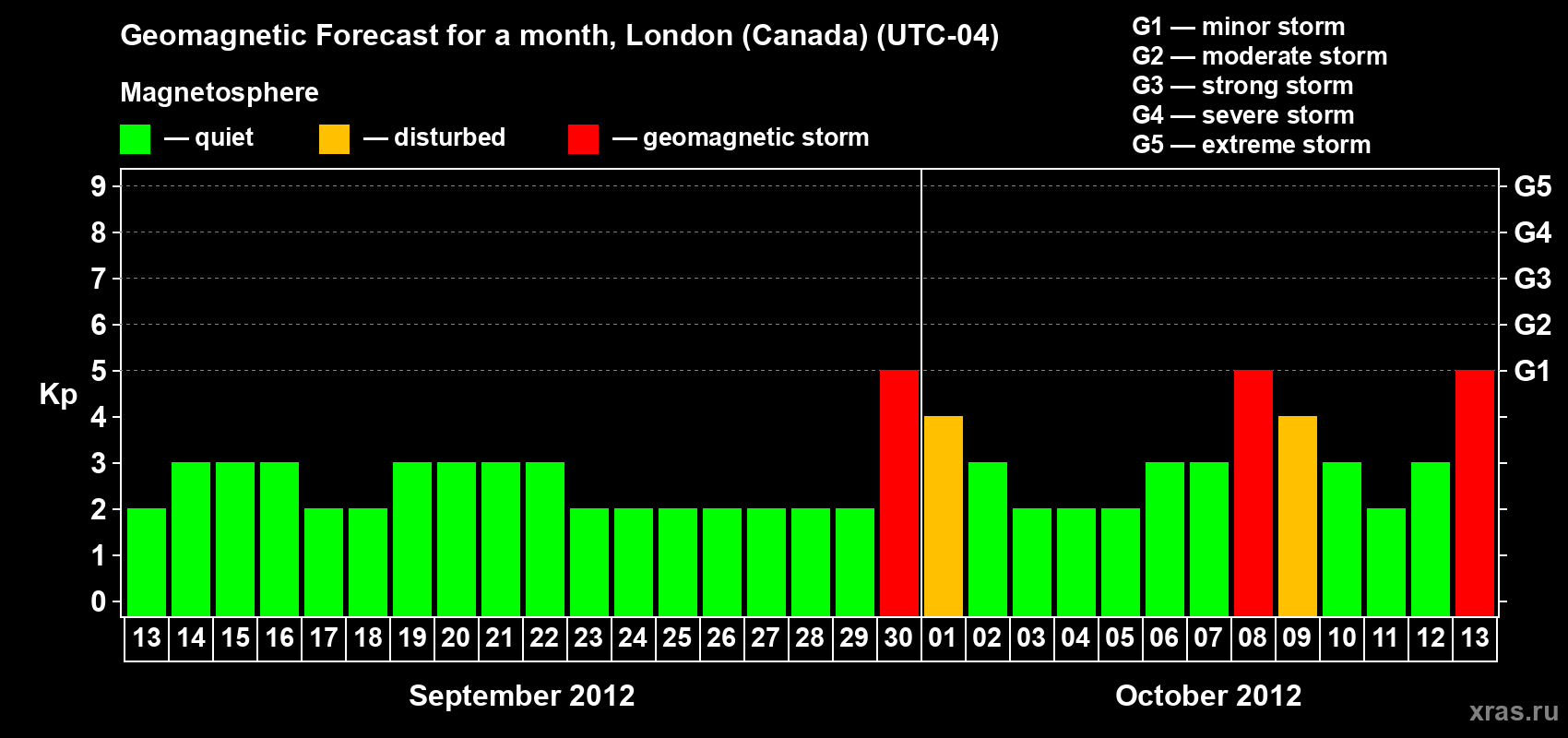 Geomagnetic storm forecast in London (Canada) for Sep 13, 2012