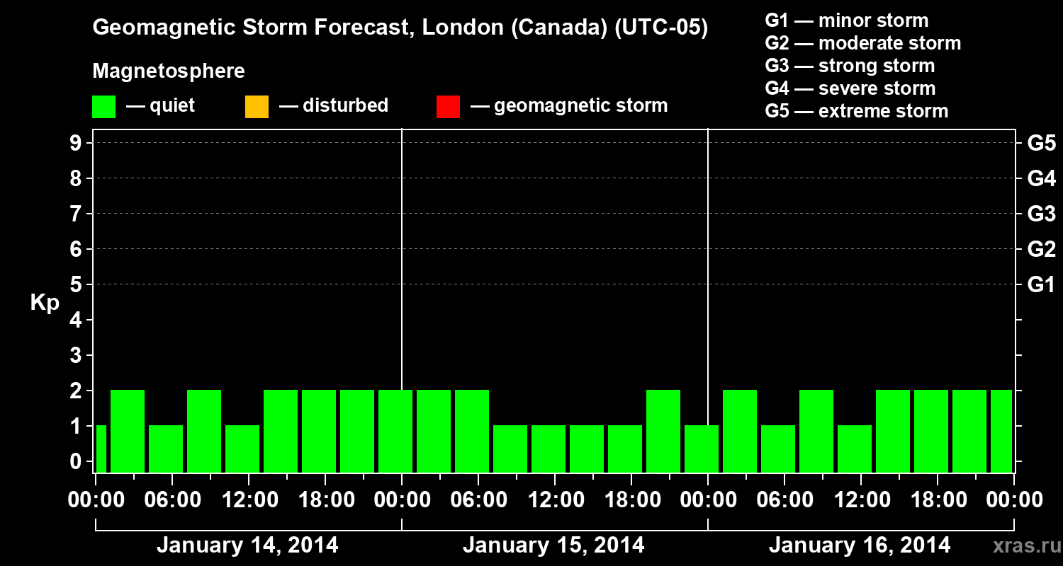 Geomagnetic storm forecast in London (Canada) for Jan 14, 2014