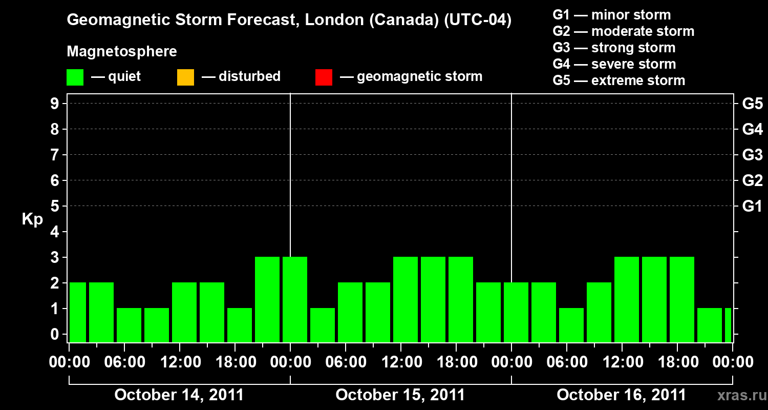Geomagnetic storm forecast in London (Canada) for Oct 14, 2011