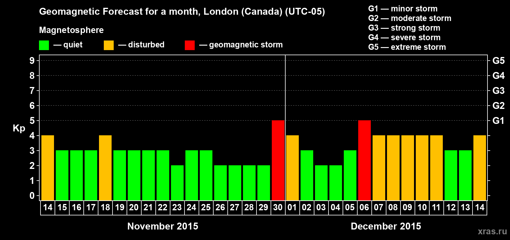 Geomagnetic storm forecast in London (Canada) for Nov 14, 2015