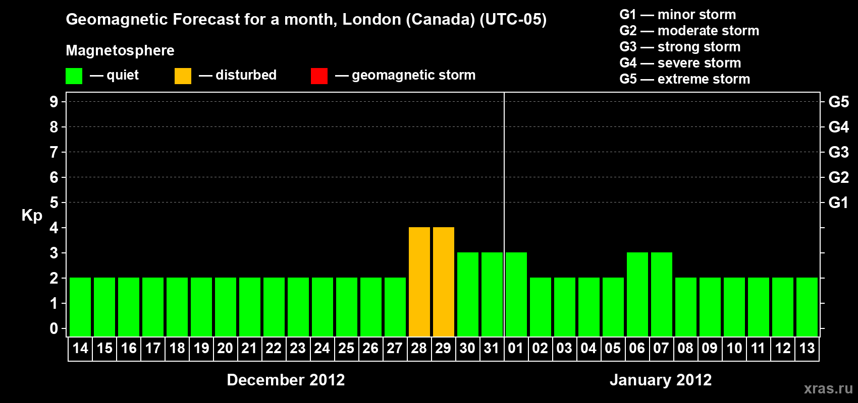 Geomagnetic storm forecast in London (Canada) for Dec 14, 2011