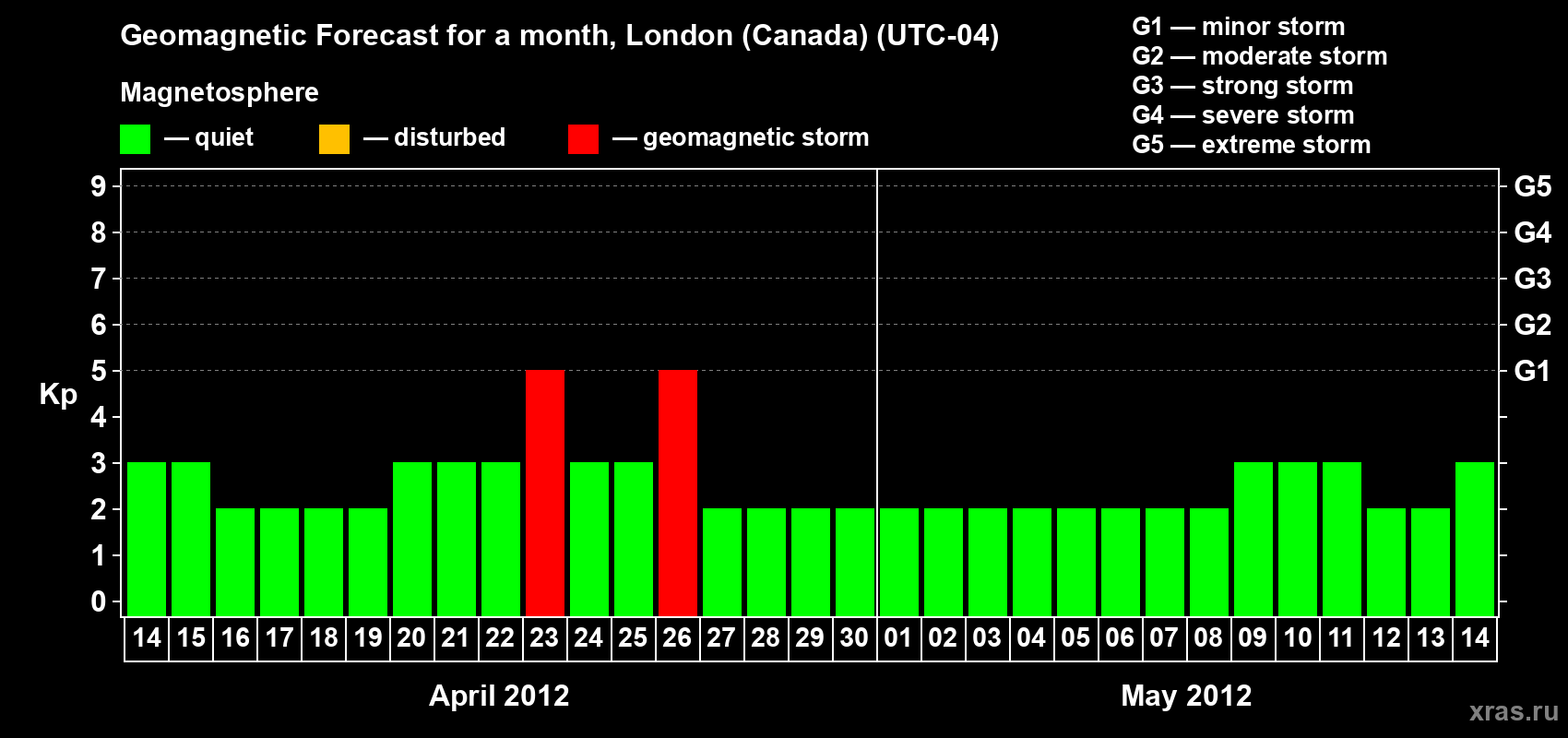 Geomagnetic storm forecast in London (Canada) for Apr 14, 2012