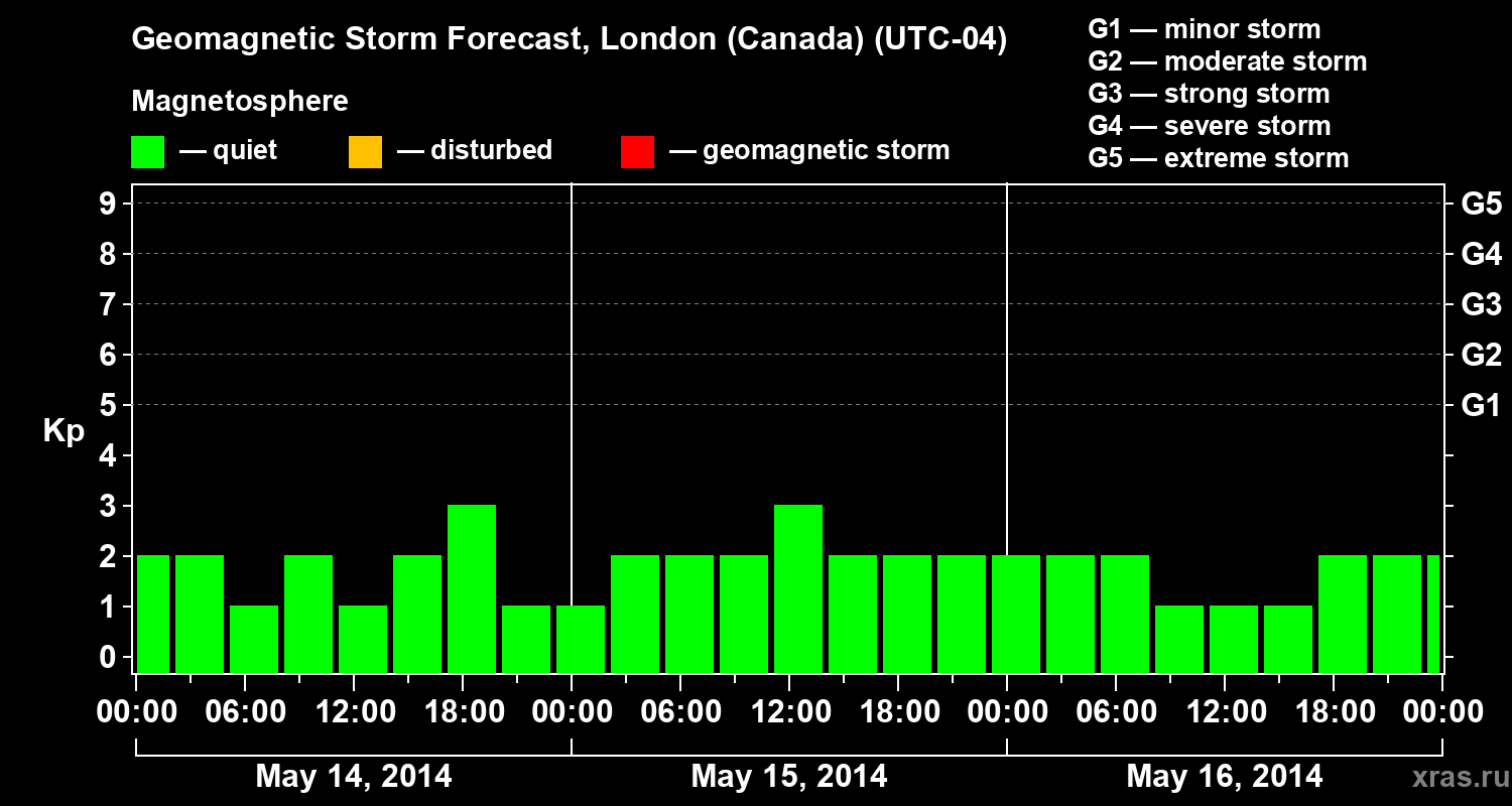 Geomagnetic storm forecast in London (Canada) for May 14, 2014