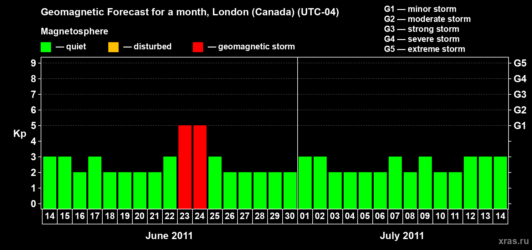 Geomagnetic storm forecast in London (Canada) for Jun 14, 2011