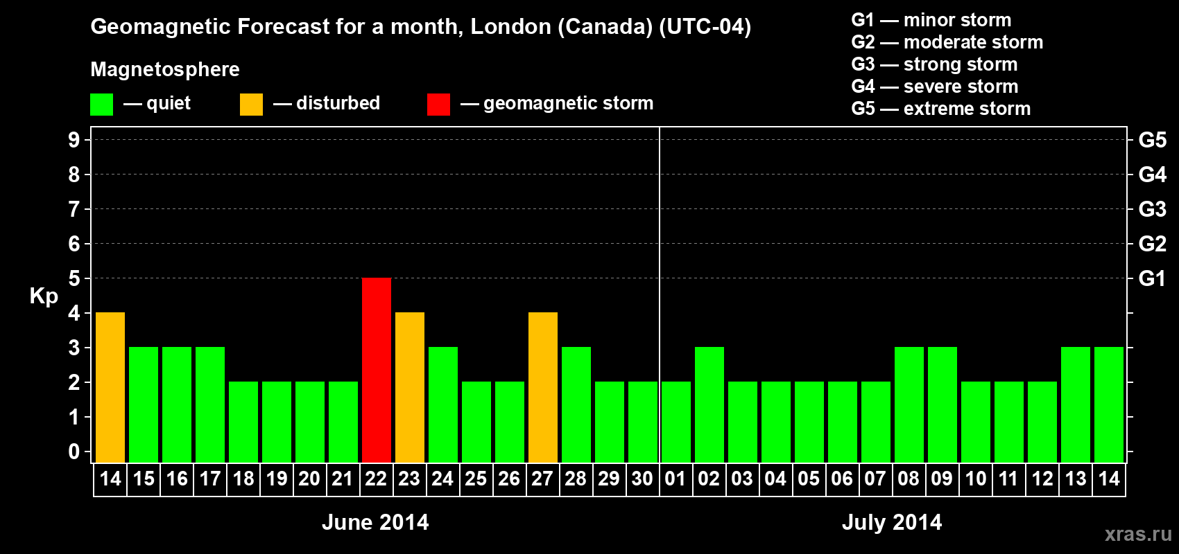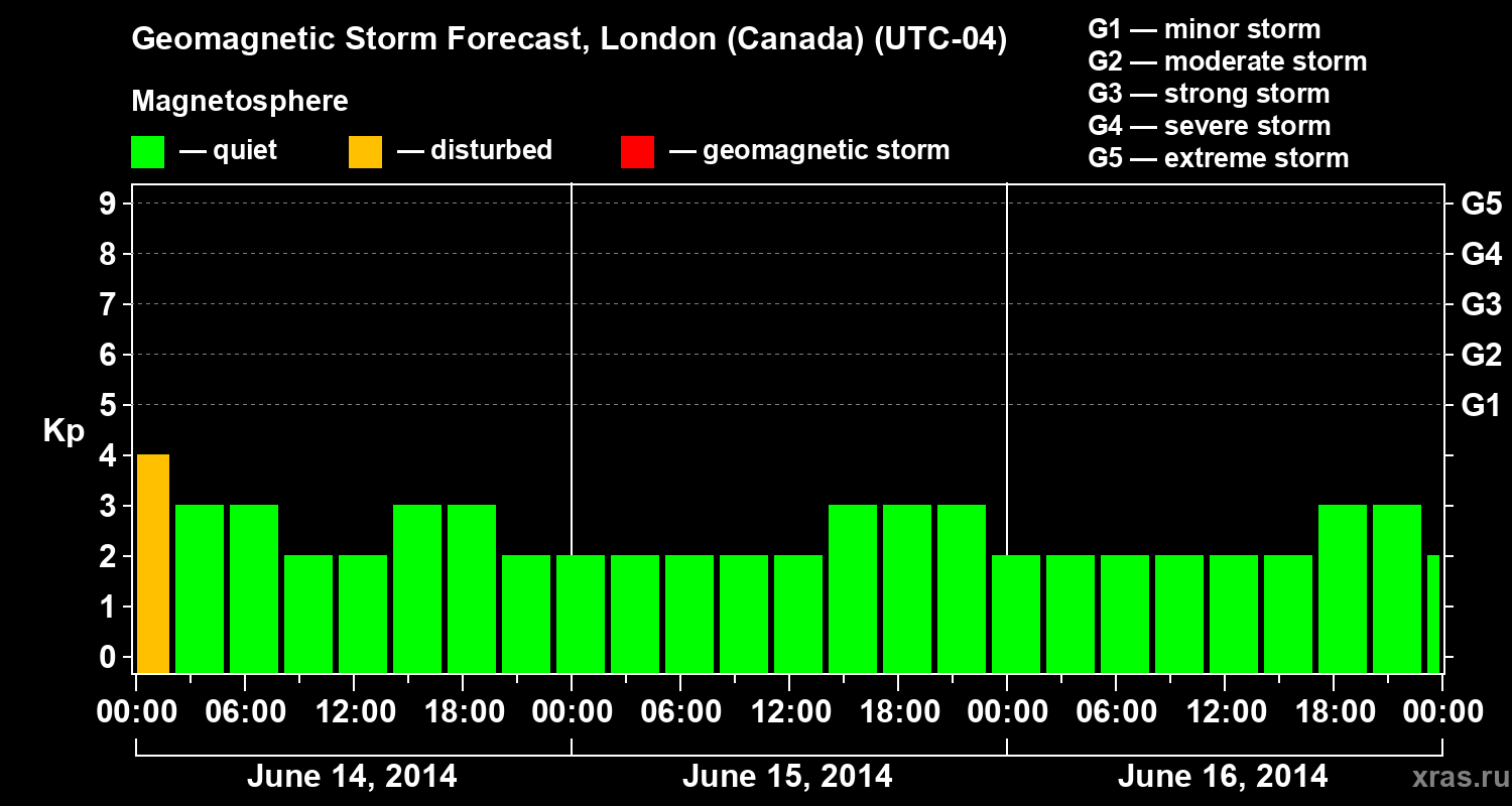 Geomagnetic storm forecast in London (Canada) for Jun 14, 2014