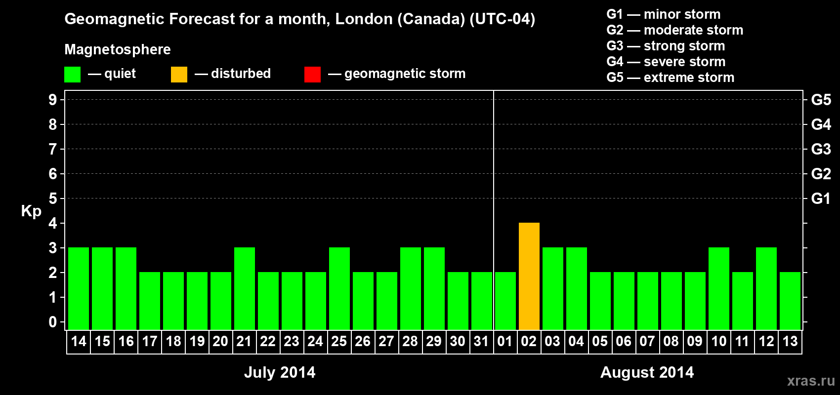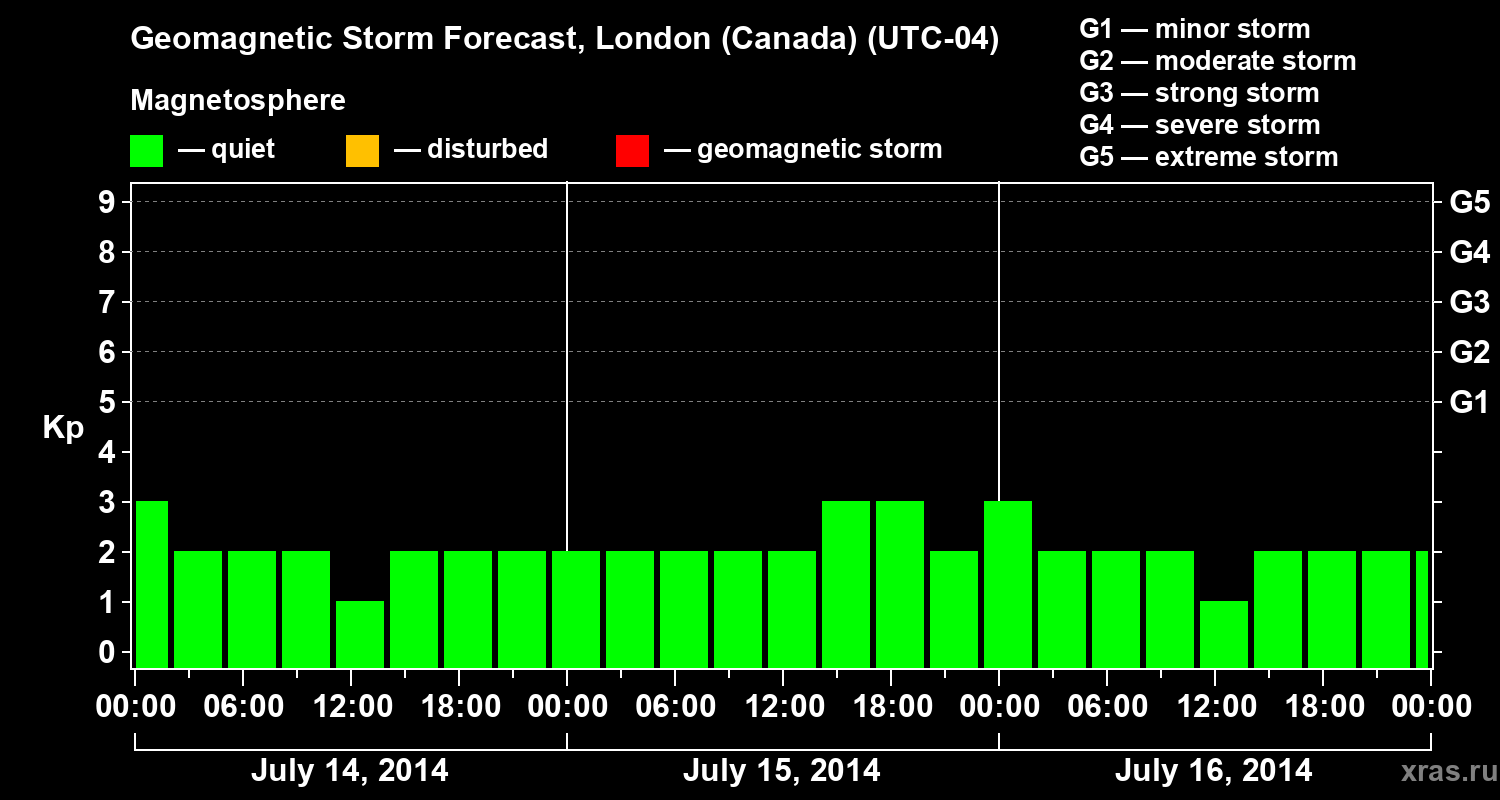 Geomagnetic storm forecast in London (Canada) for Jul 14, 2014