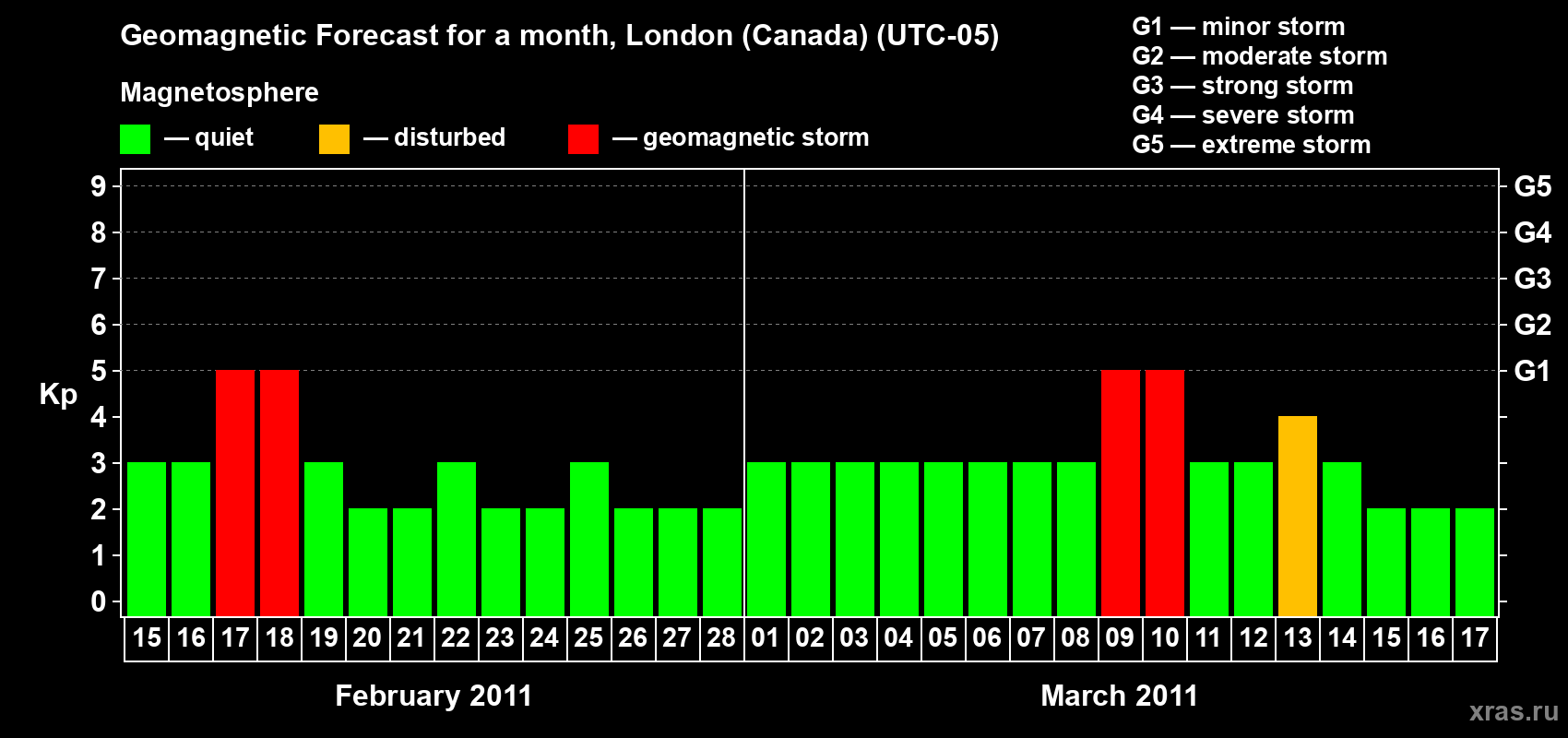 Geomagnetic storm forecast in London (Canada) for Feb 15, 2011