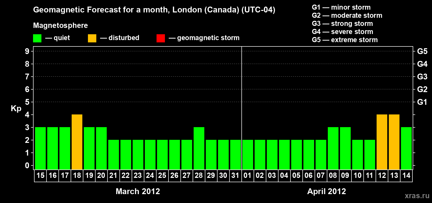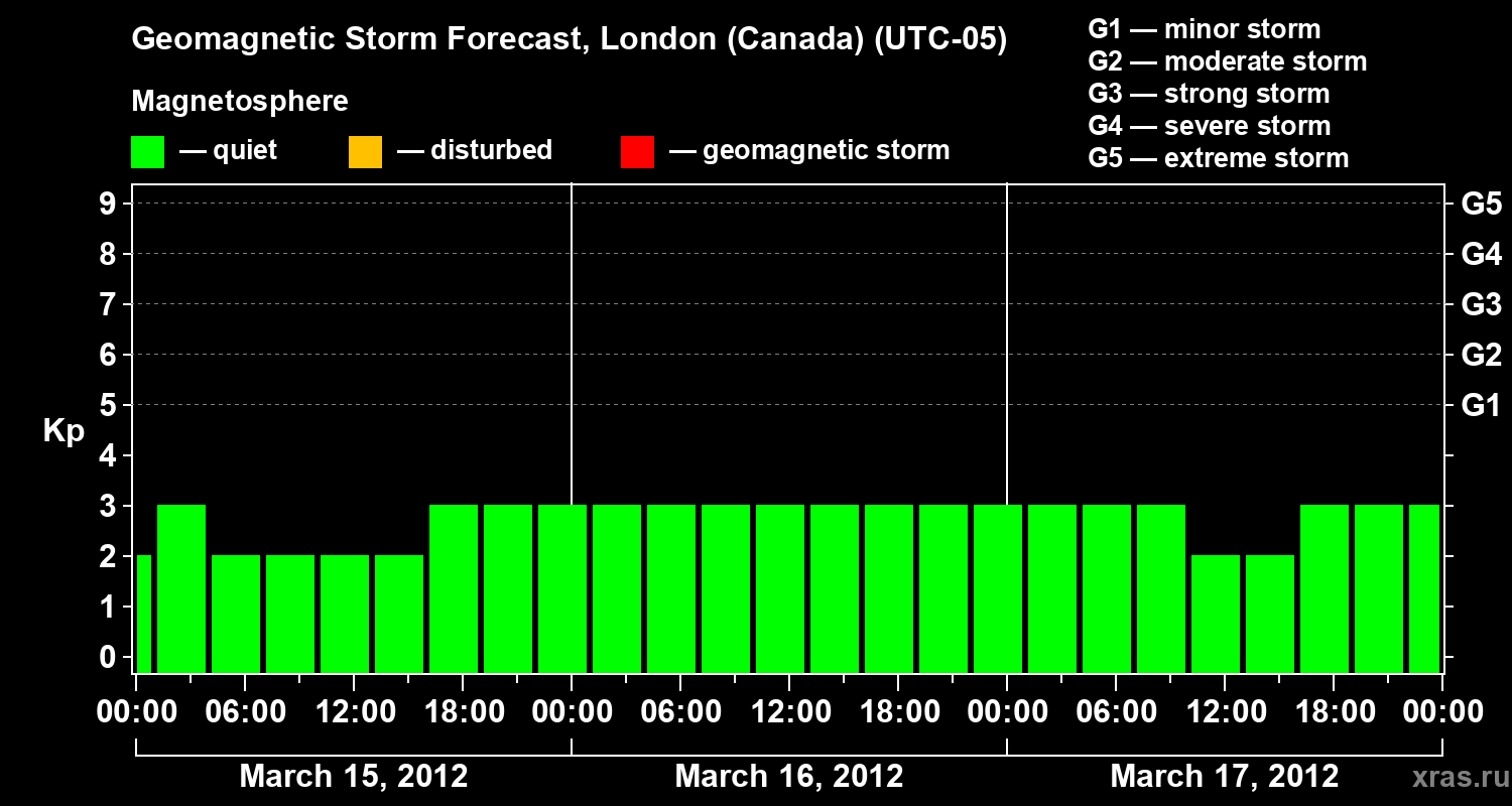 Geomagnetic storm forecast in London (Canada) for Mar 15, 2012