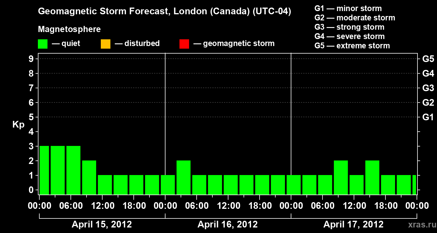 Geomagnetic storm forecast in London (Canada) for Apr 15, 2012