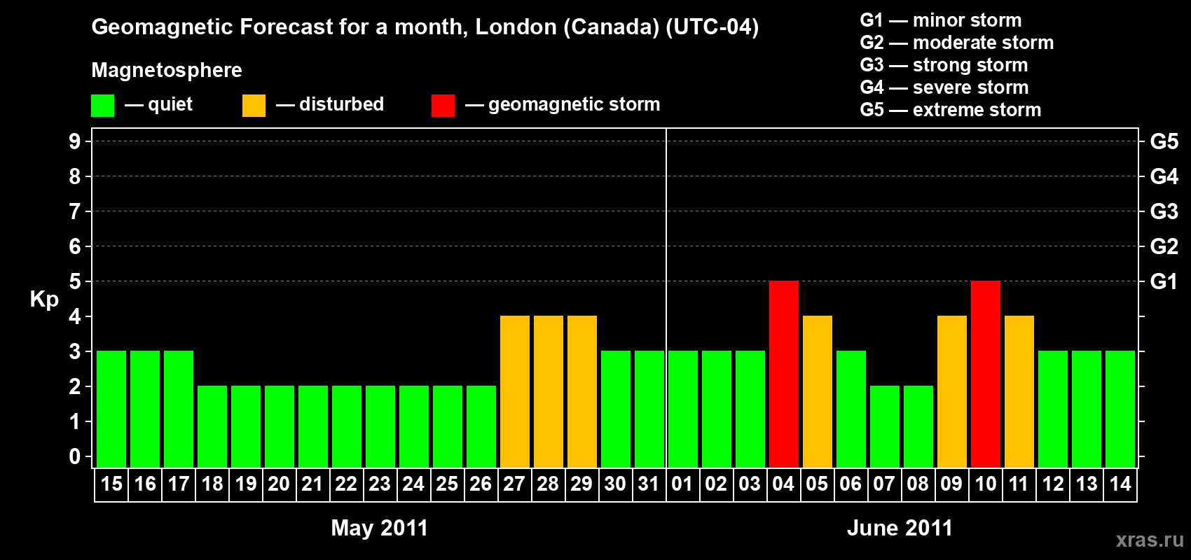 Geomagnetic storm forecast in London (Canada) for May 15, 2011