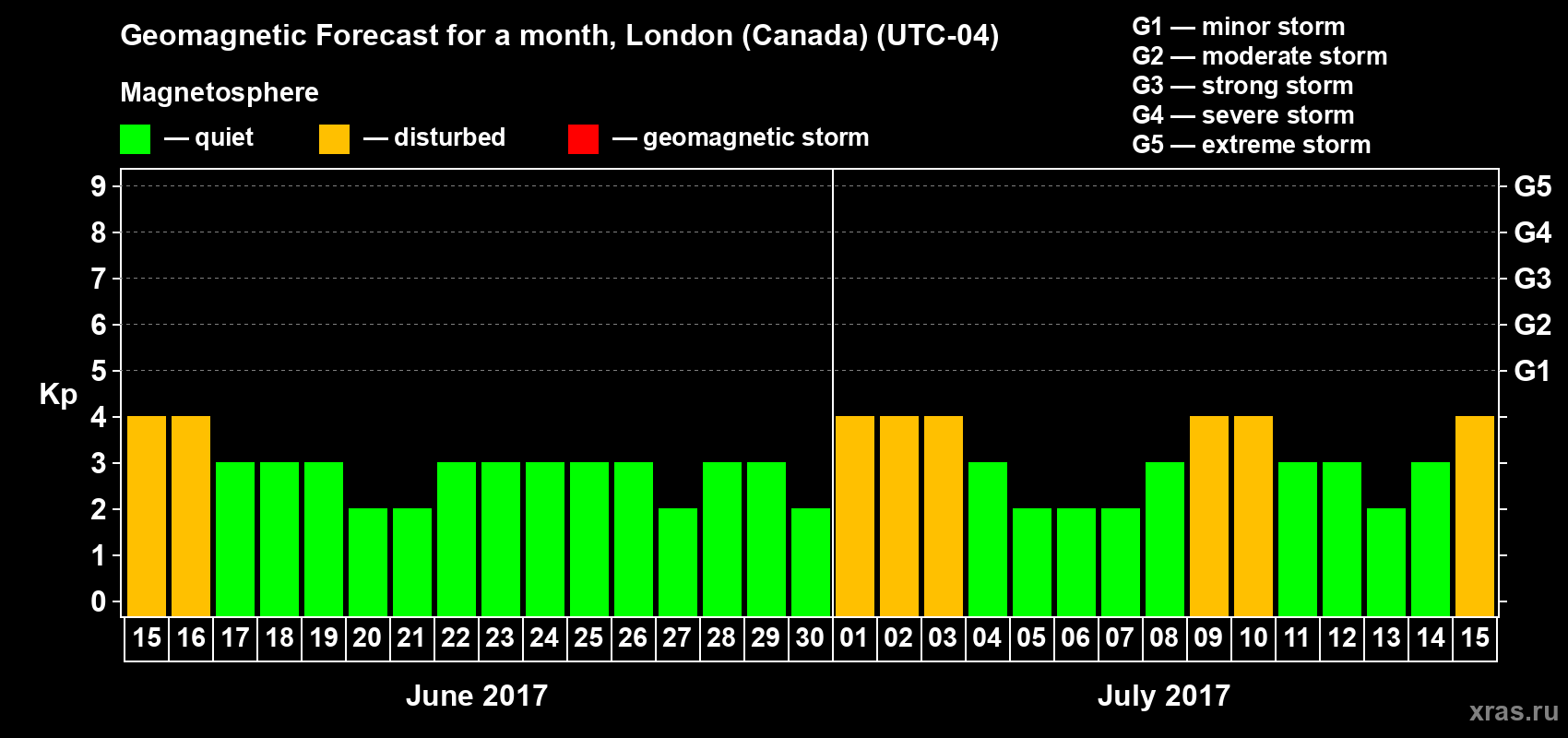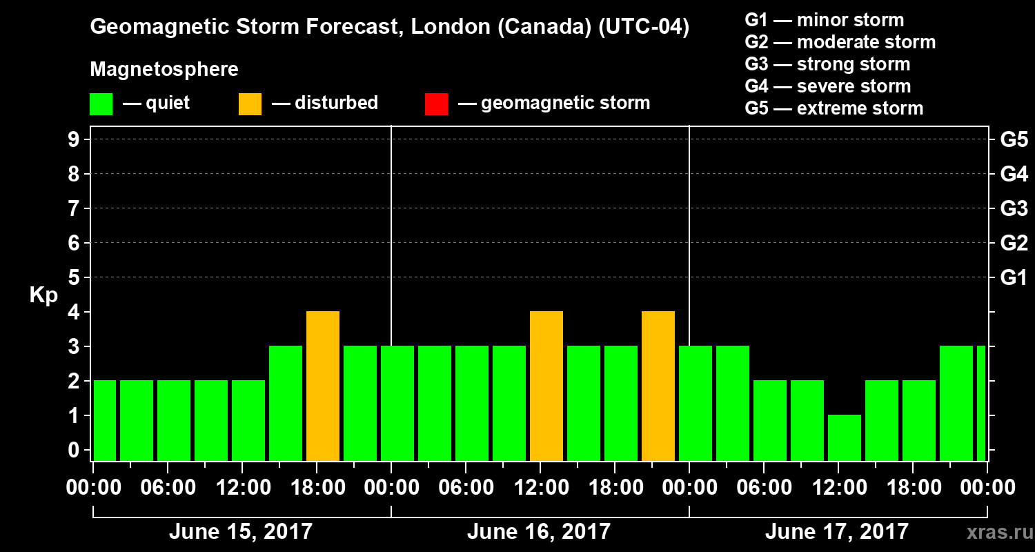 Geomagnetic storm forecast in London (Canada) for Jun 15, 2017