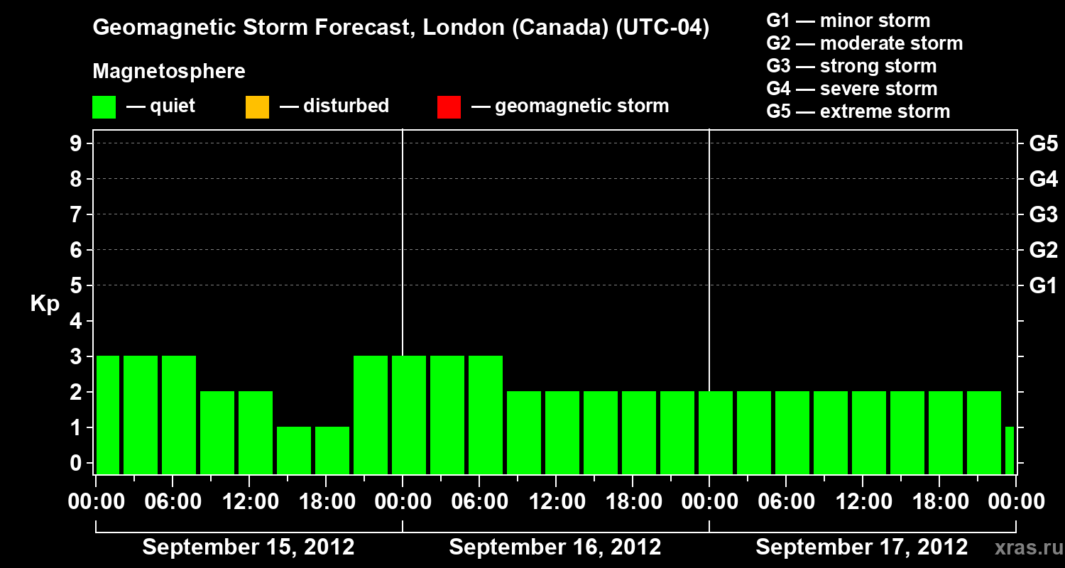 Geomagnetic storm forecast in London (Canada) for Sep 15, 2012