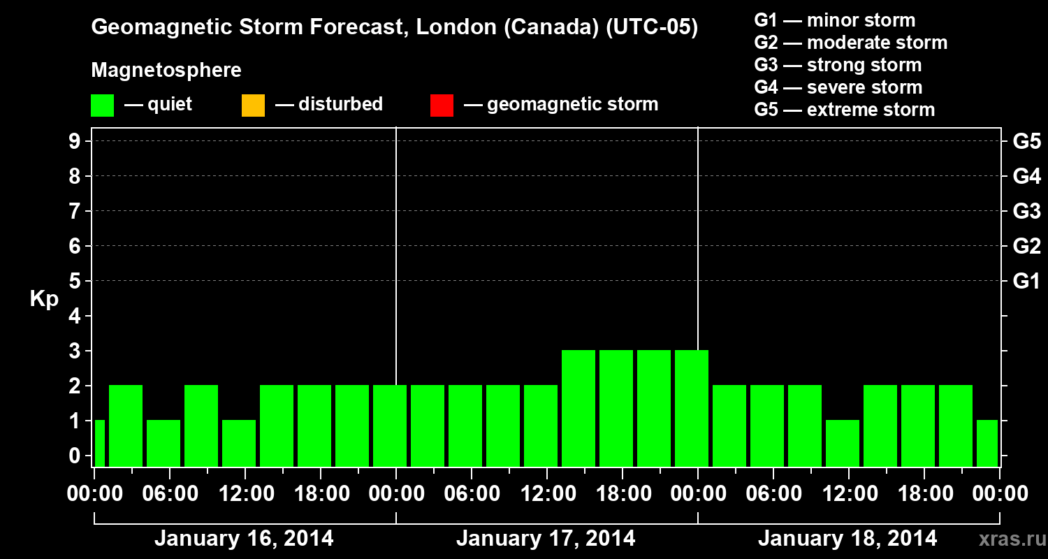 Geomagnetic storm forecast in London (Canada) for Jan 16, 2014
