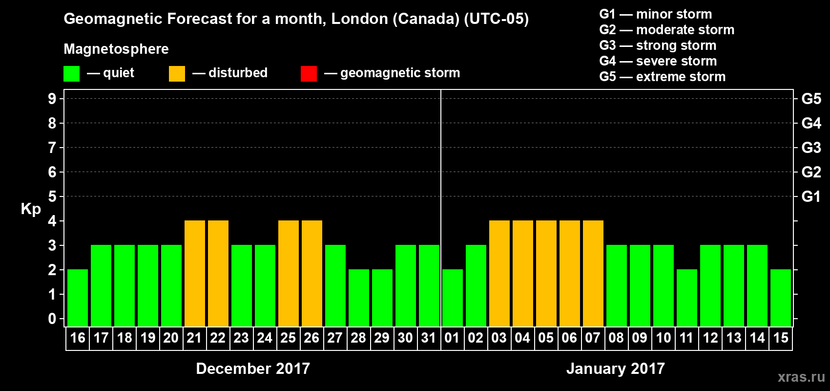 Geomagnetic storm forecast in London (Canada) for Dec 16, 2016