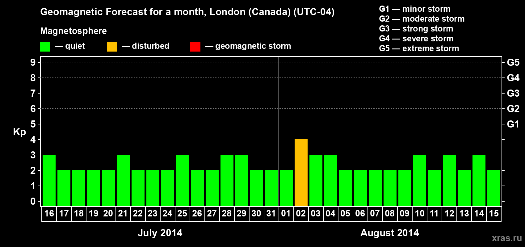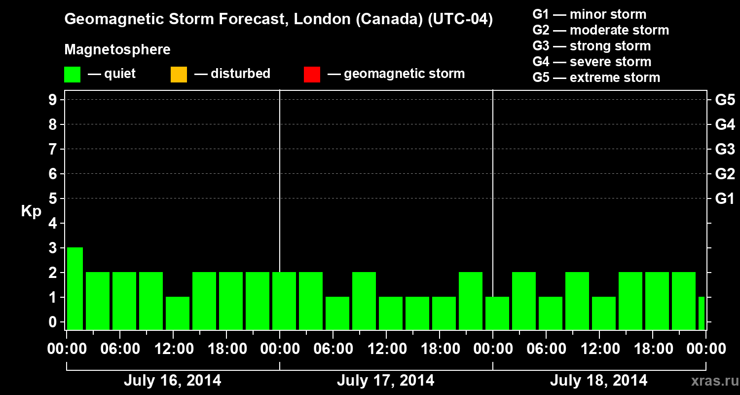Geomagnetic storm forecast in London (Canada) for Jul 16, 2014