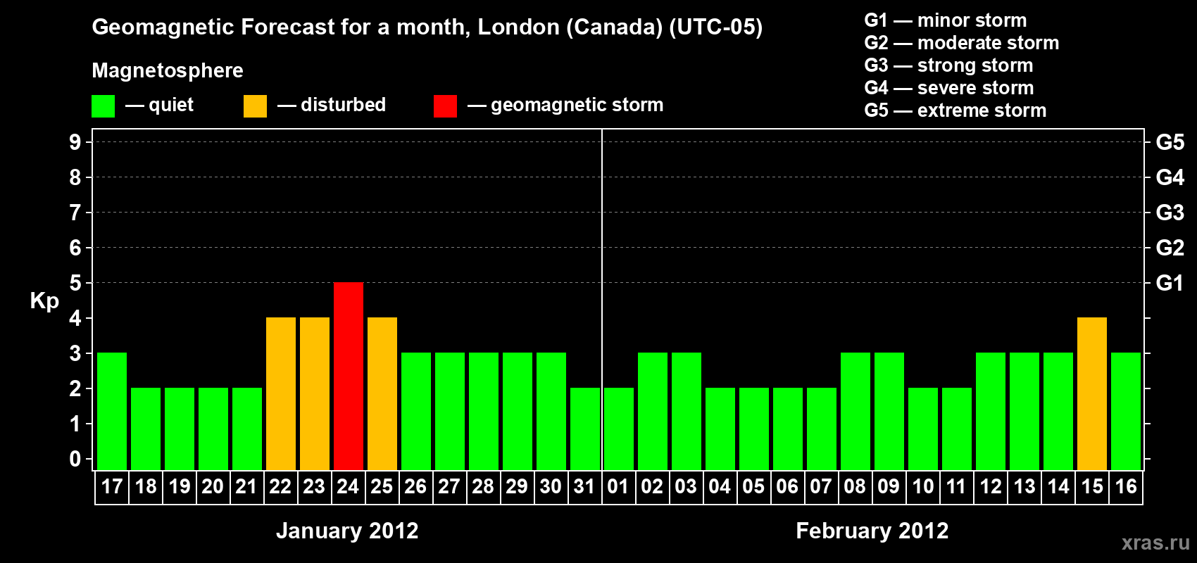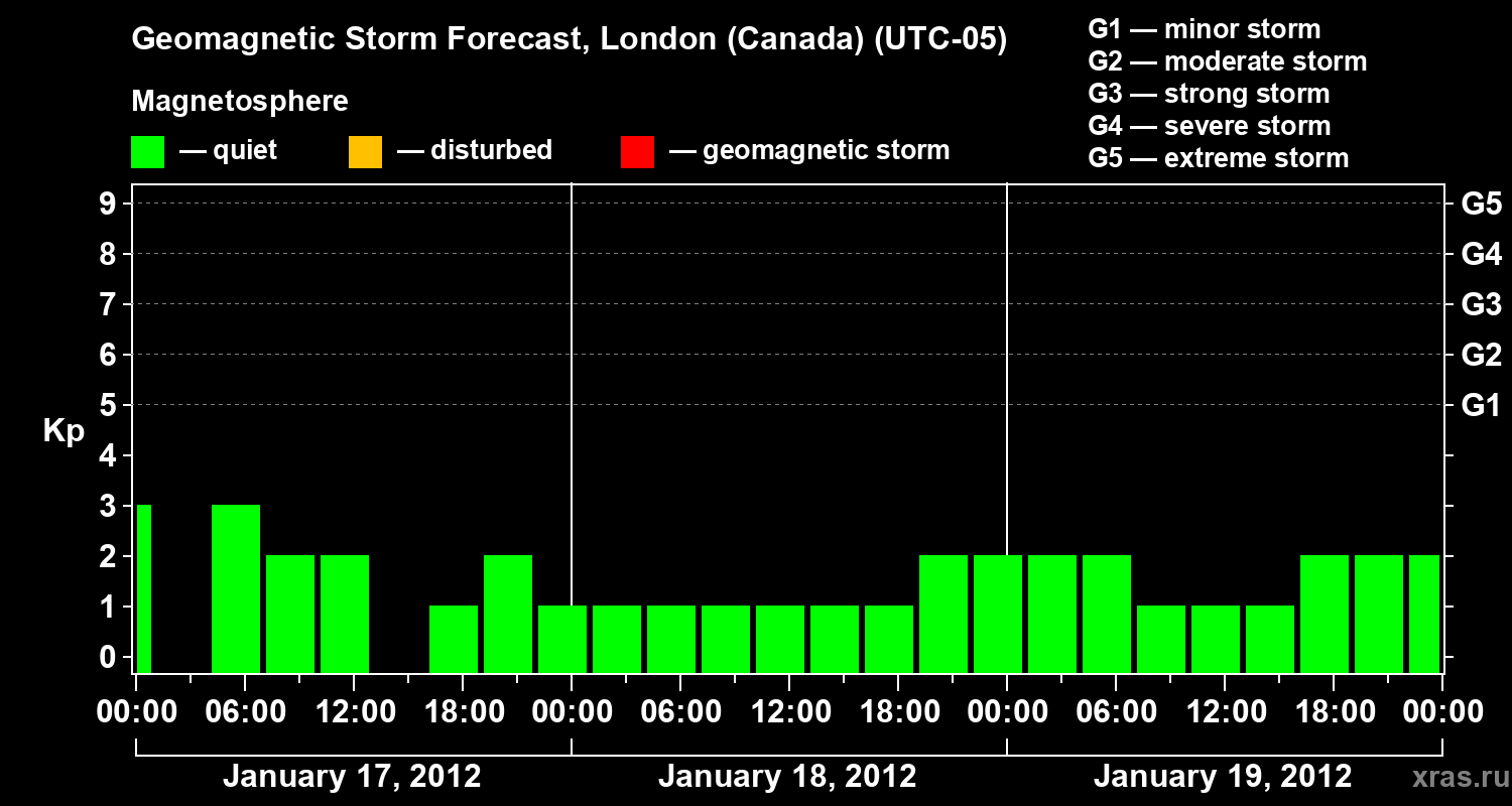 Geomagnetic storm forecast in London (Canada) for Jan 17, 2012