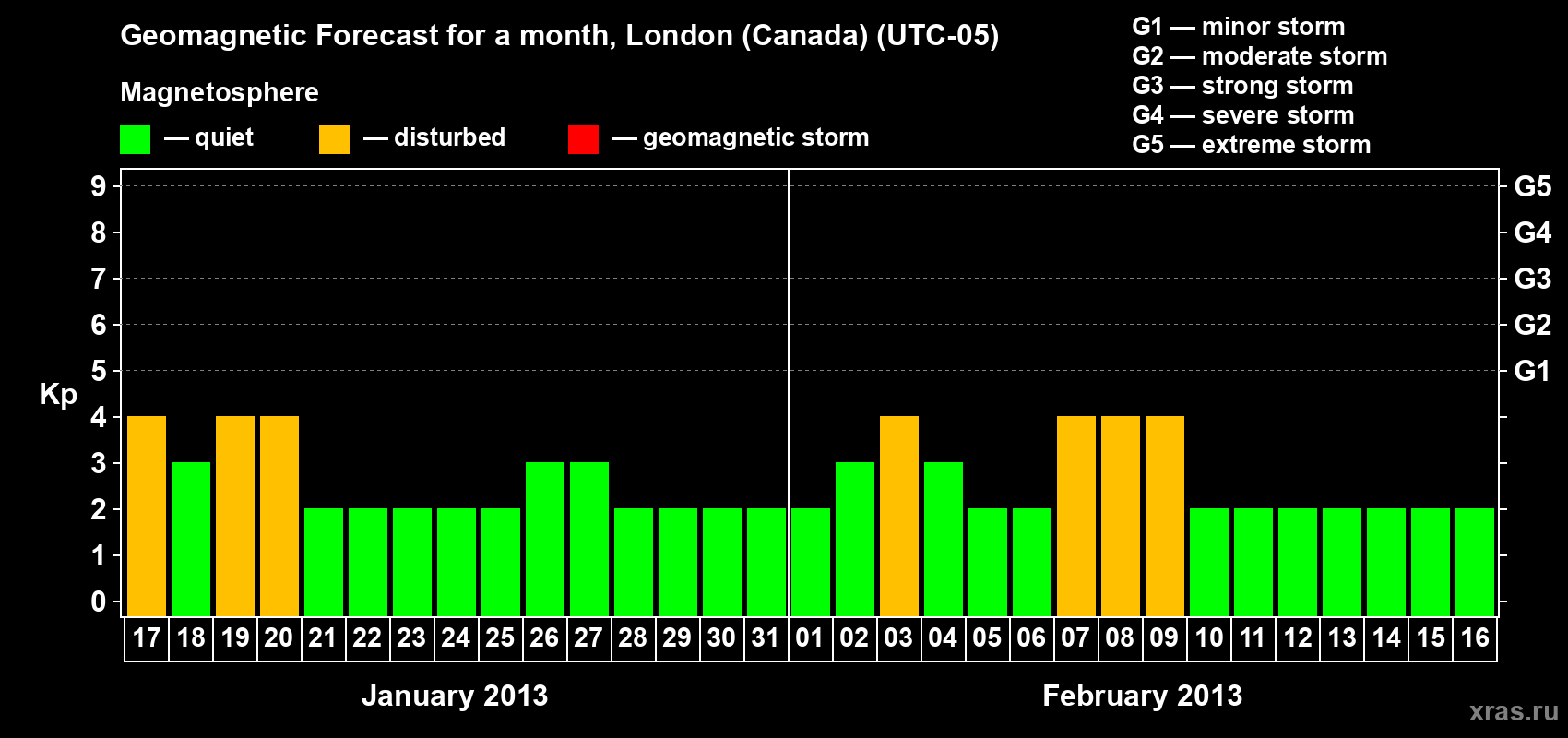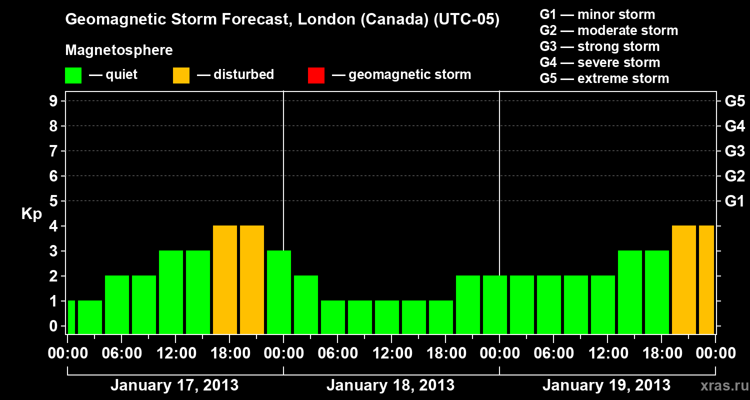 Geomagnetic storm forecast in London (Canada) for Jan 17, 2013