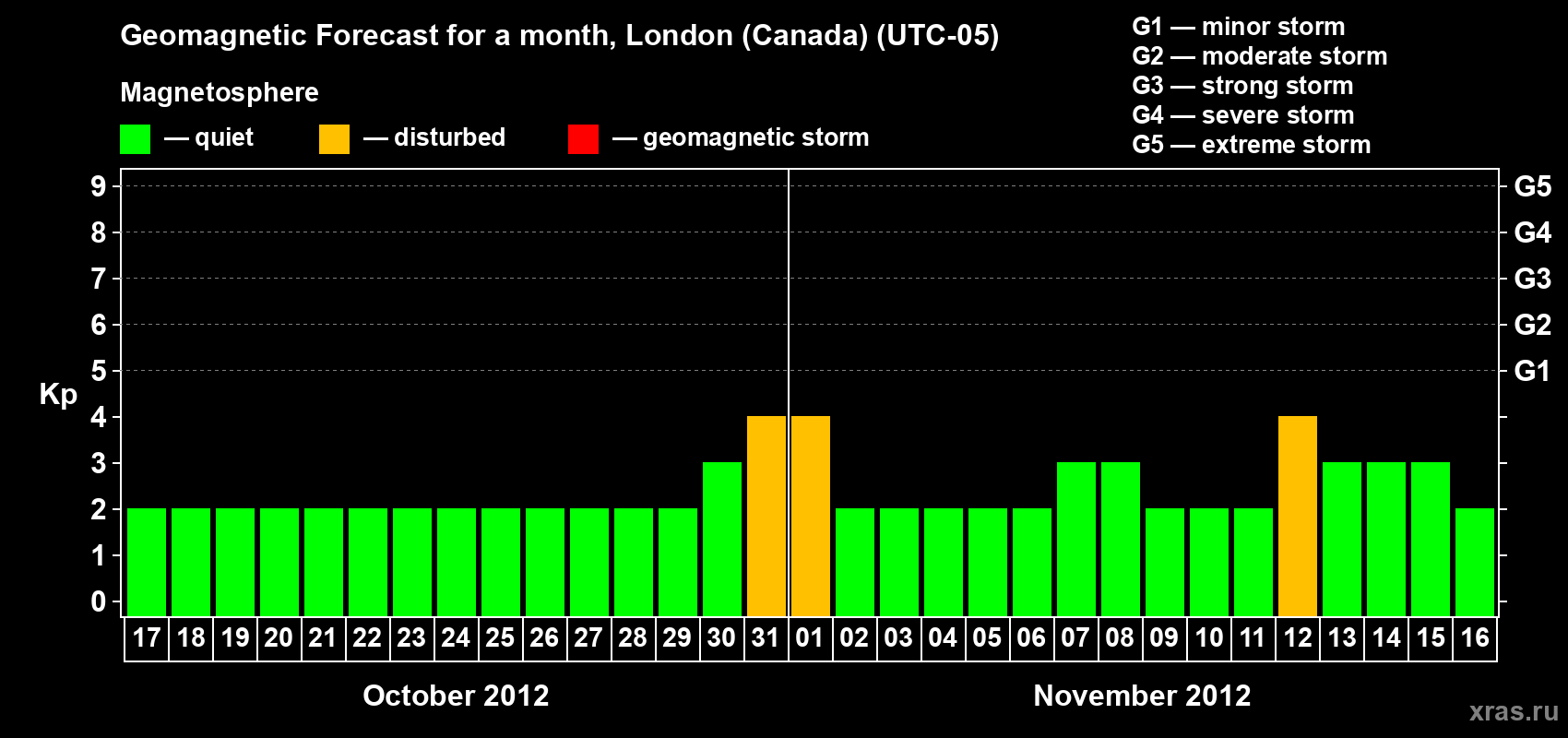 Geomagnetic storm forecast in London (Canada) for Oct 17, 2012