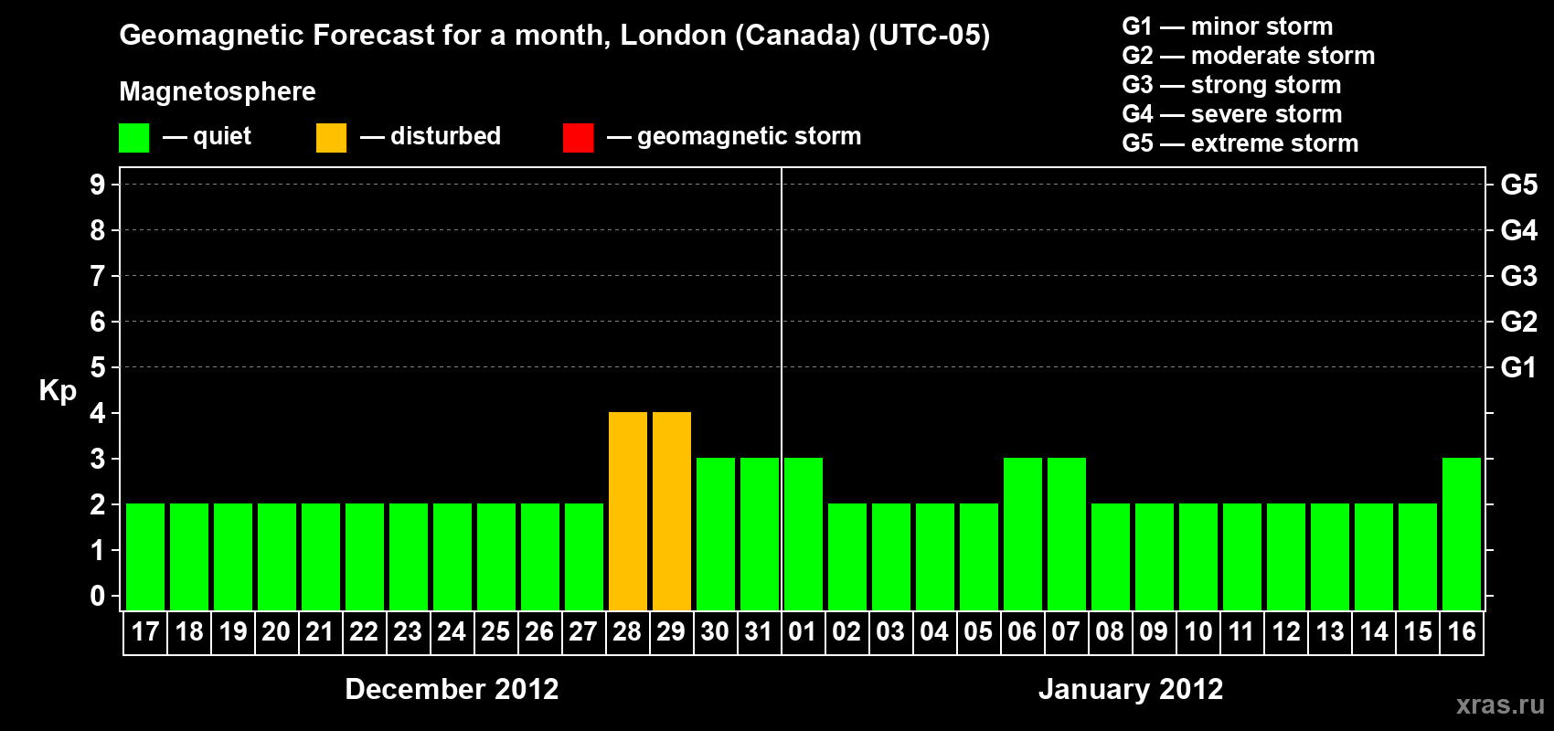 Geomagnetic storm forecast in London (Canada) for Dec 17, 2011