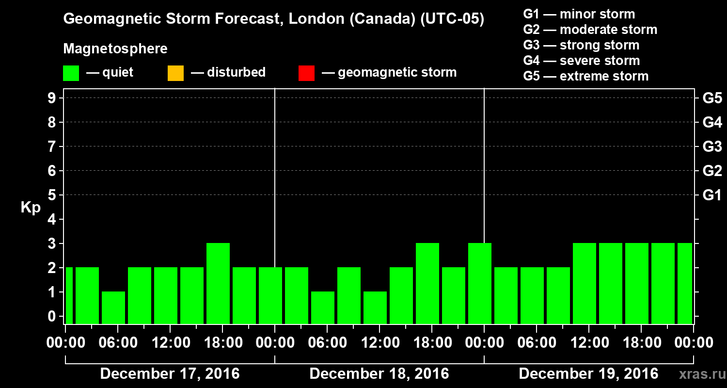 Geomagnetic storm forecast in London (Canada) for Dec 17, 2016