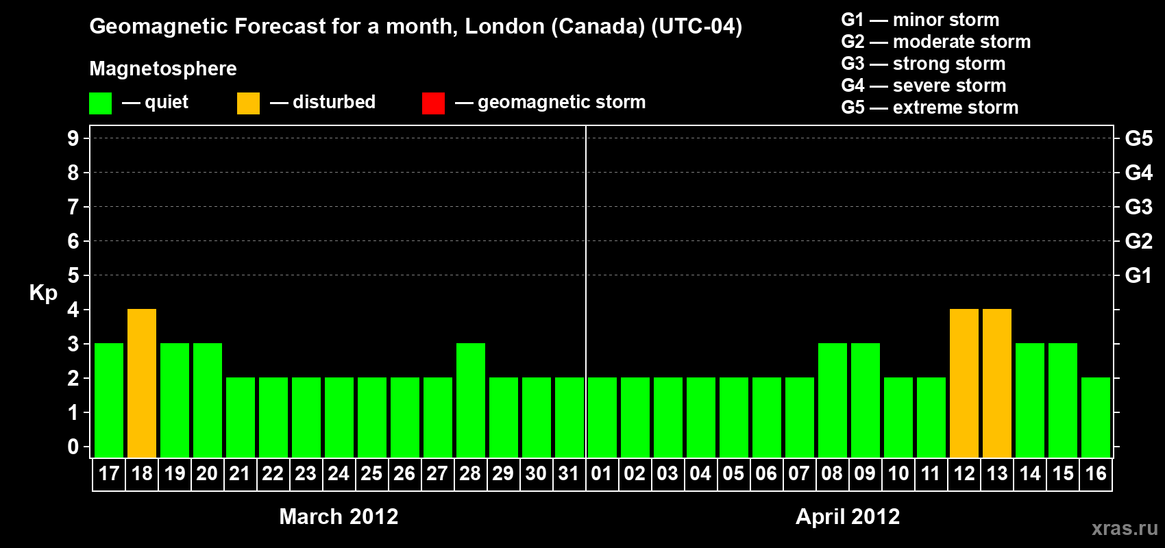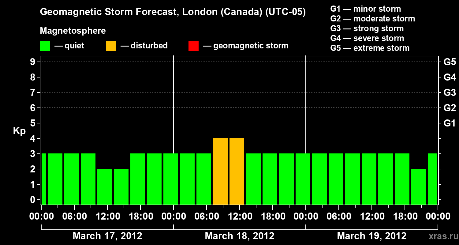Geomagnetic storm forecast in London (Canada) for Mar 17, 2012
