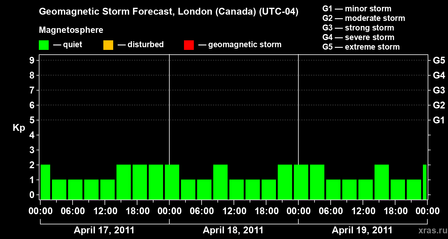 Geomagnetic storm forecast in London (Canada) for Apr 17, 2011