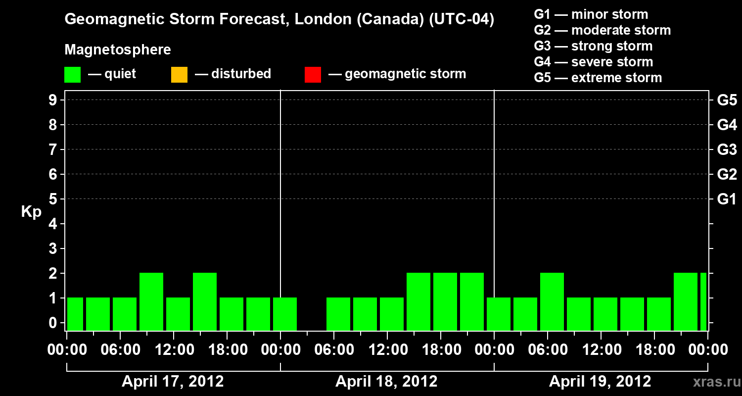 Geomagnetic storm forecast in London (Canada) for Apr 17, 2012