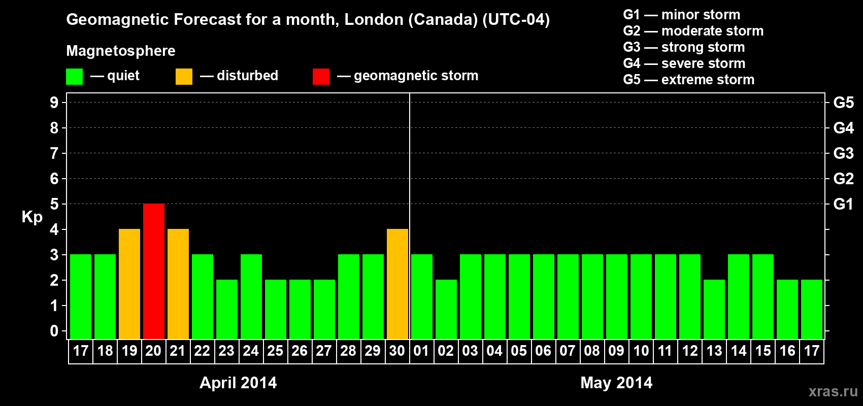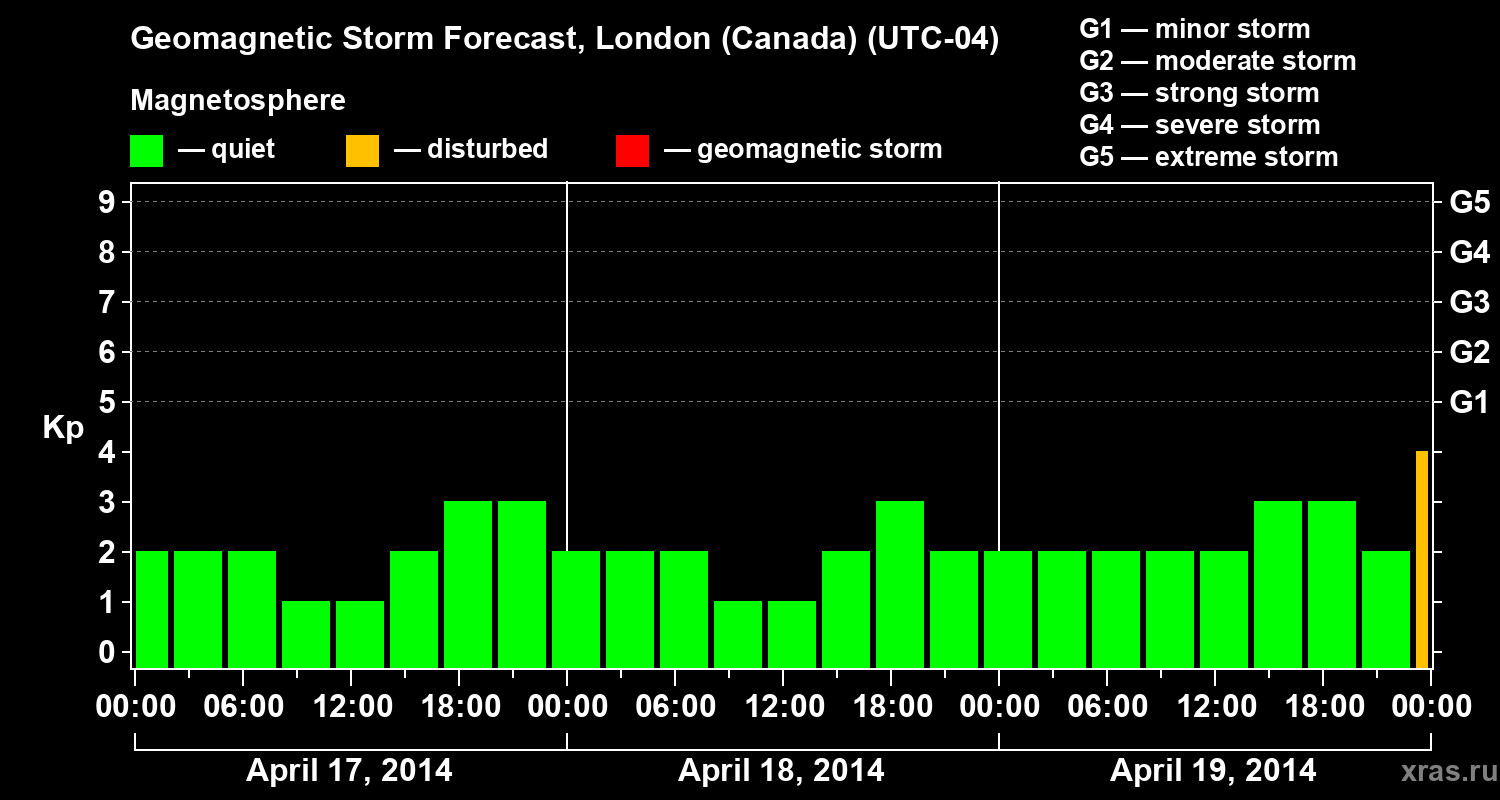Geomagnetic storm forecast in London (Canada) for Apr 17, 2014