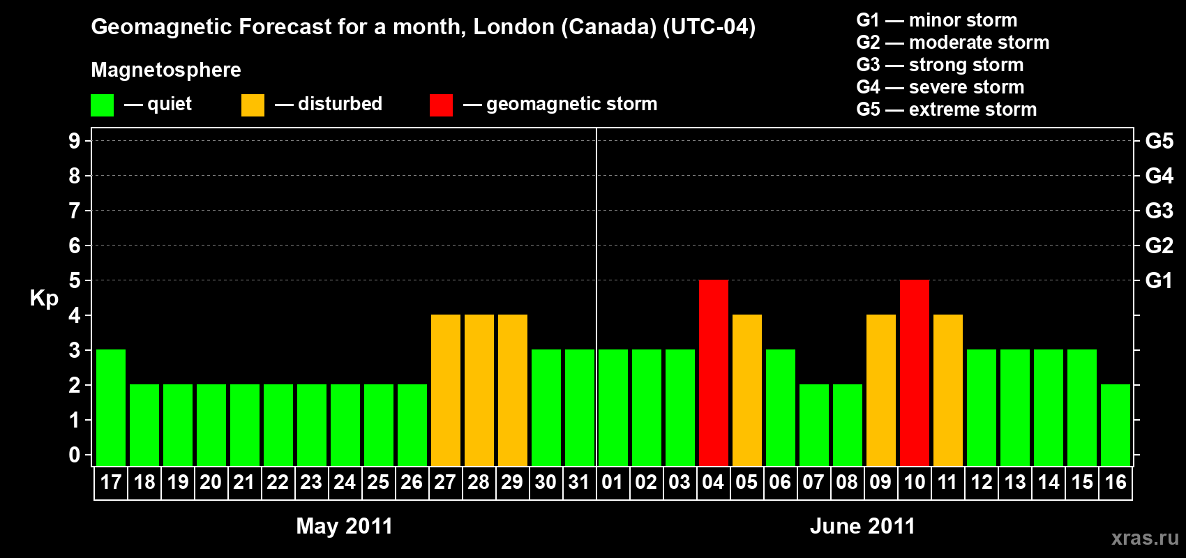 Geomagnetic storm forecast in London (Canada) for May 17, 2011