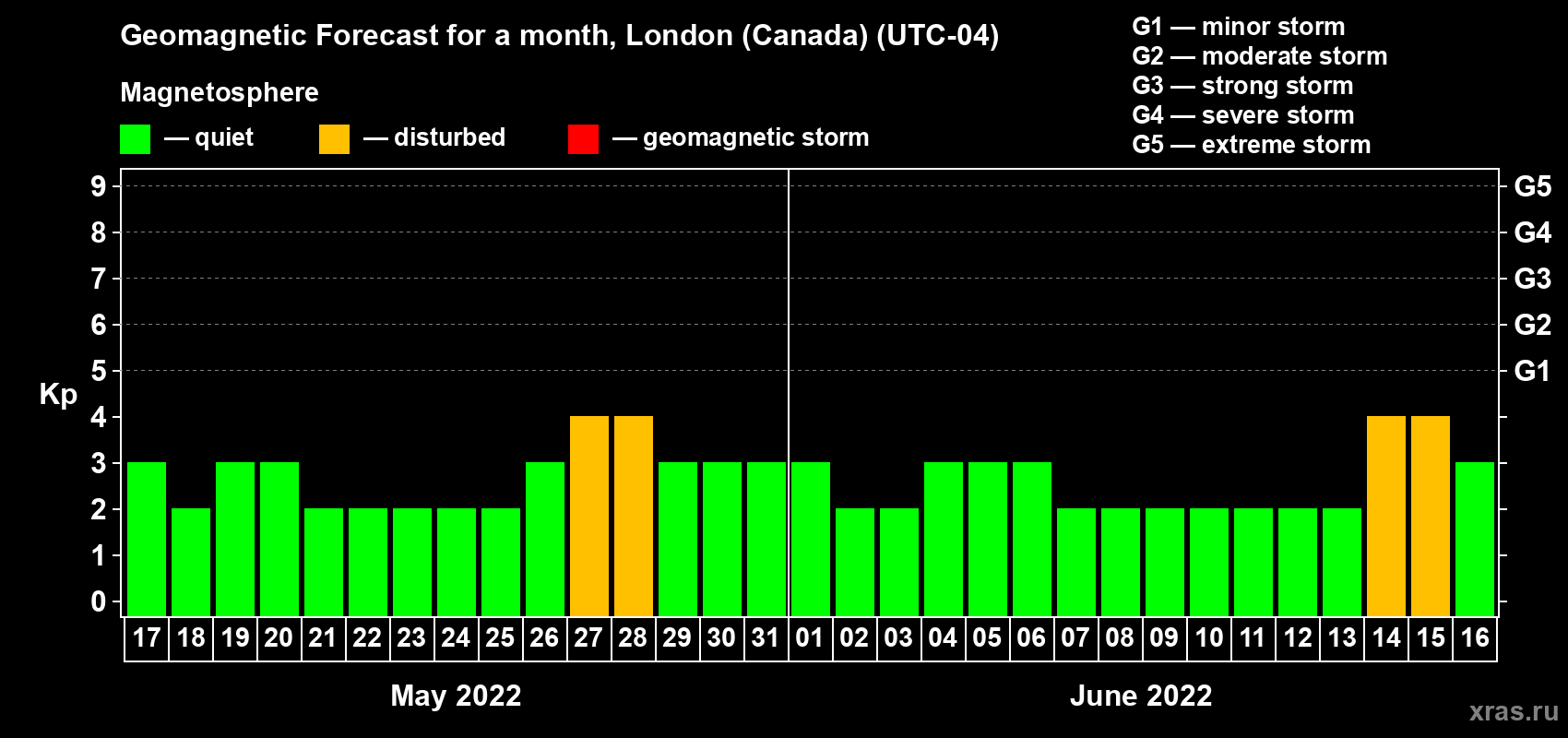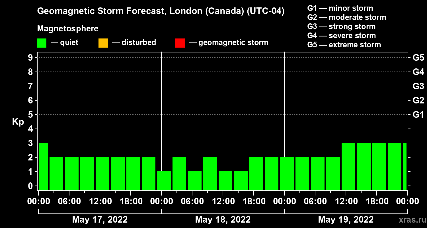 Geomagnetic storm forecast in London (Canada) for May 17, 2022