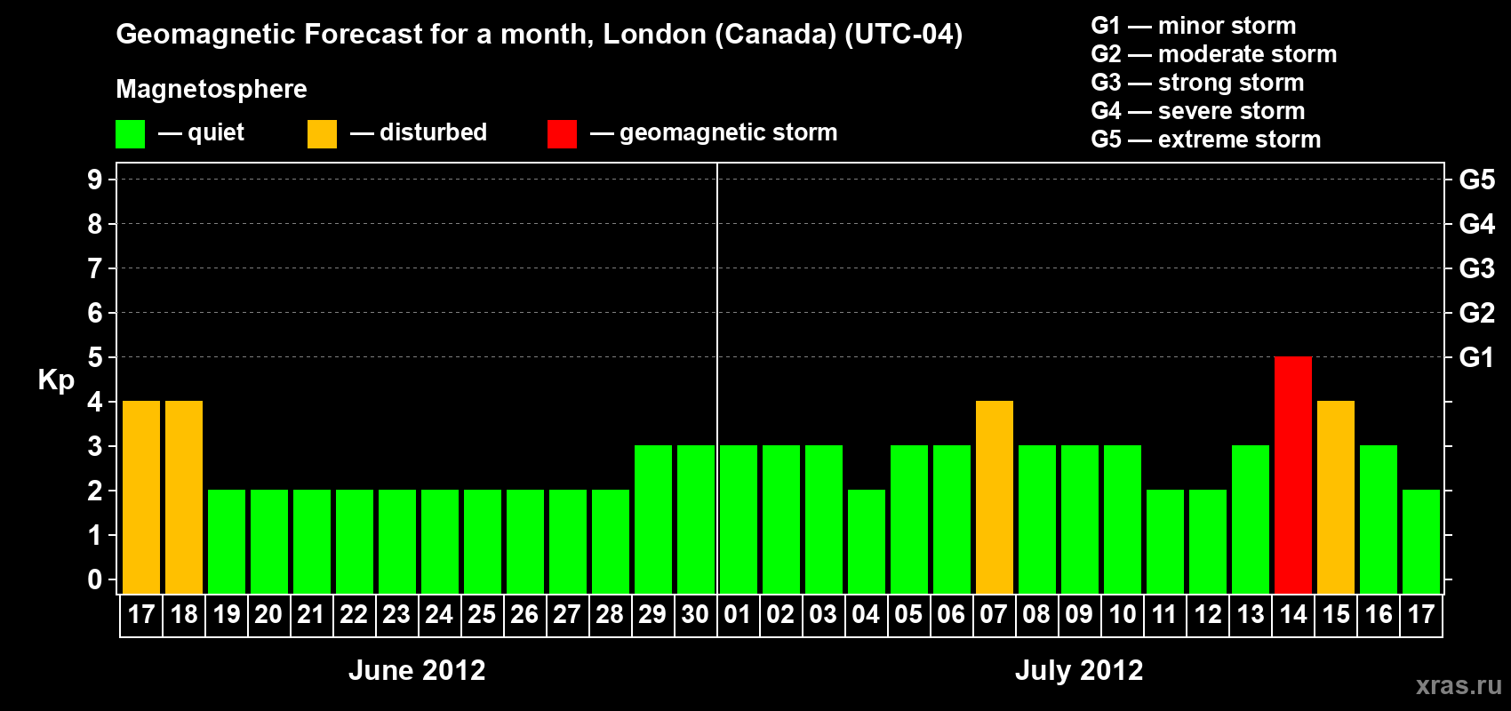 Geomagnetic storm forecast in London (Canada) for Jun 17, 2012