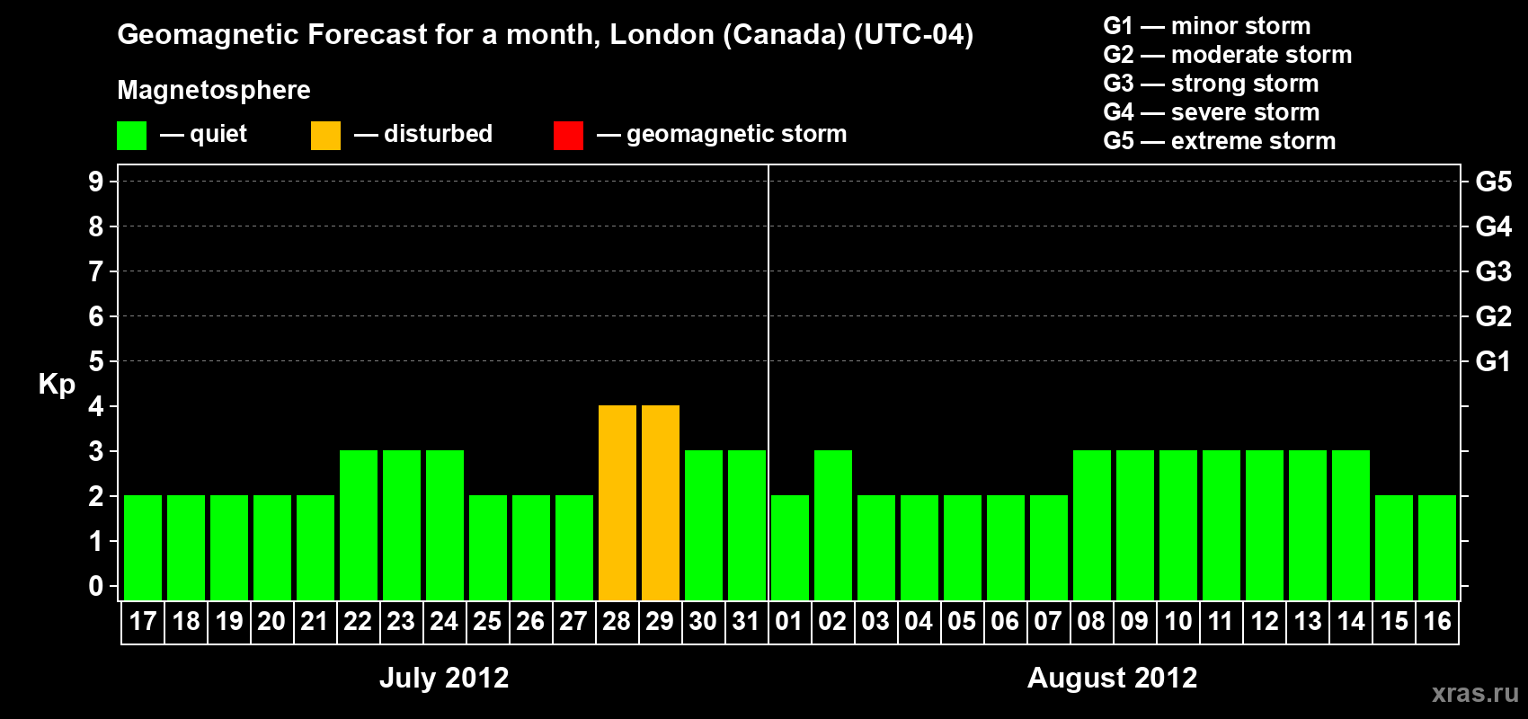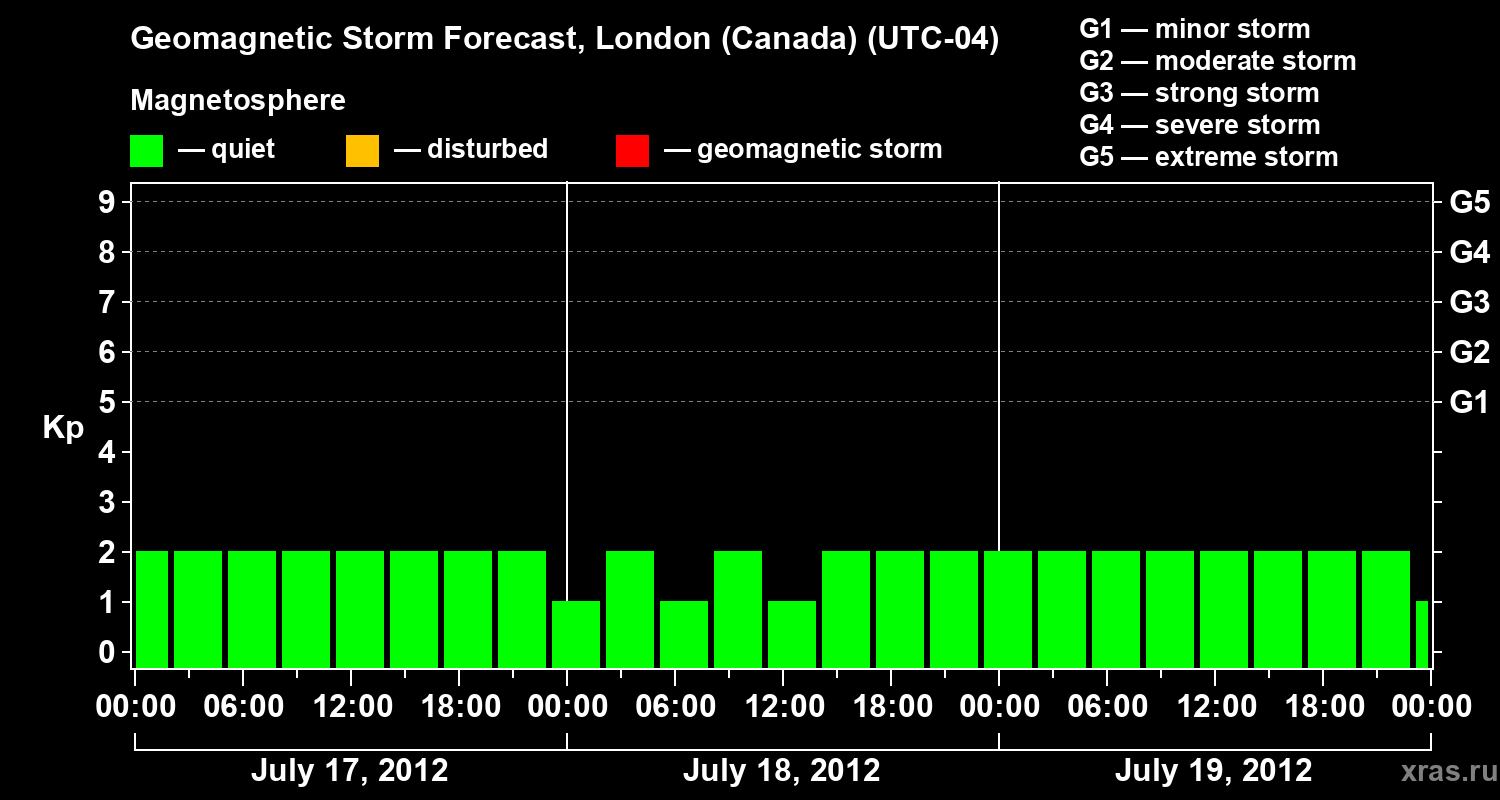 Geomagnetic storm forecast in London (Canada) for Jul 17, 2012