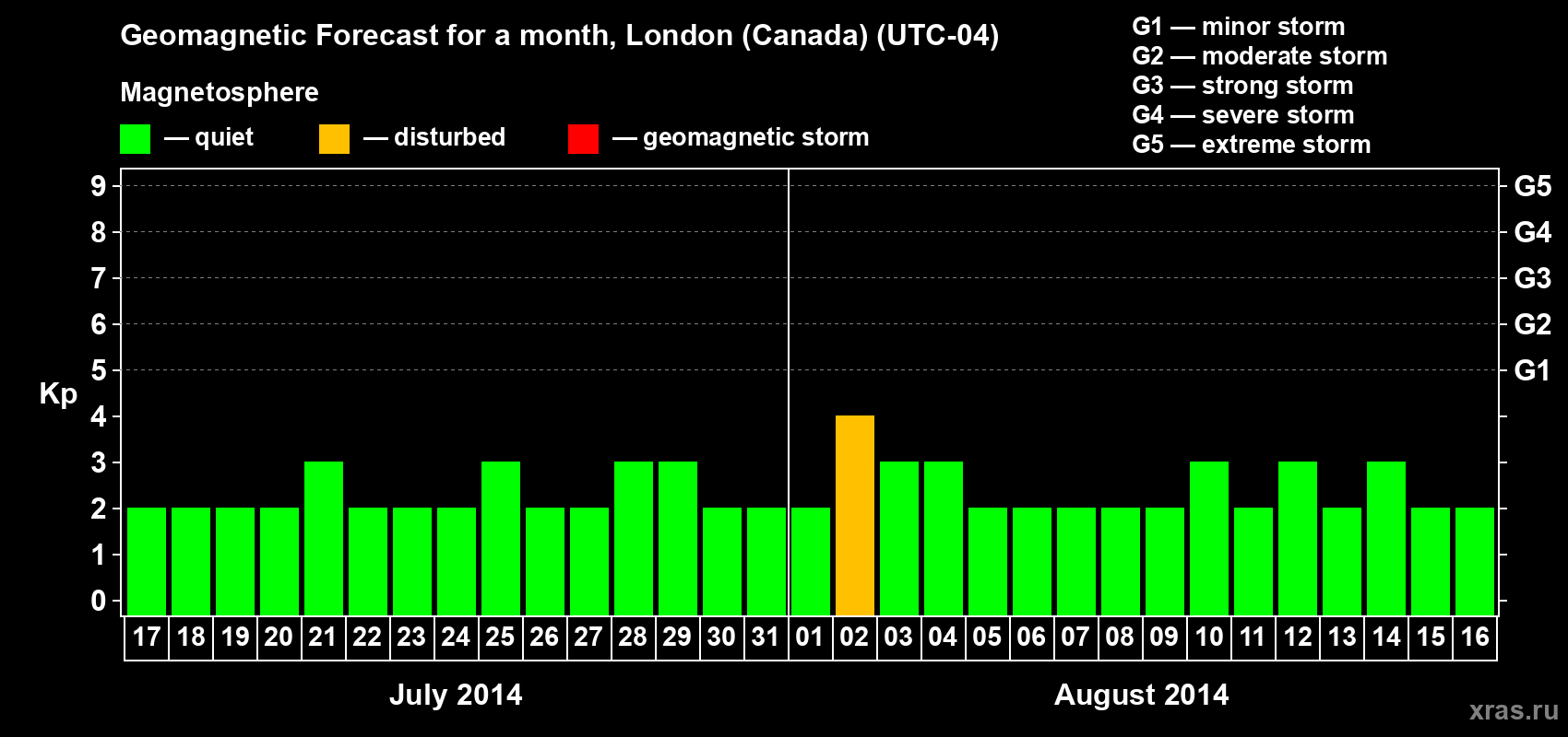 Geomagnetic storm forecast in London (Canada) for Jul 17, 2014