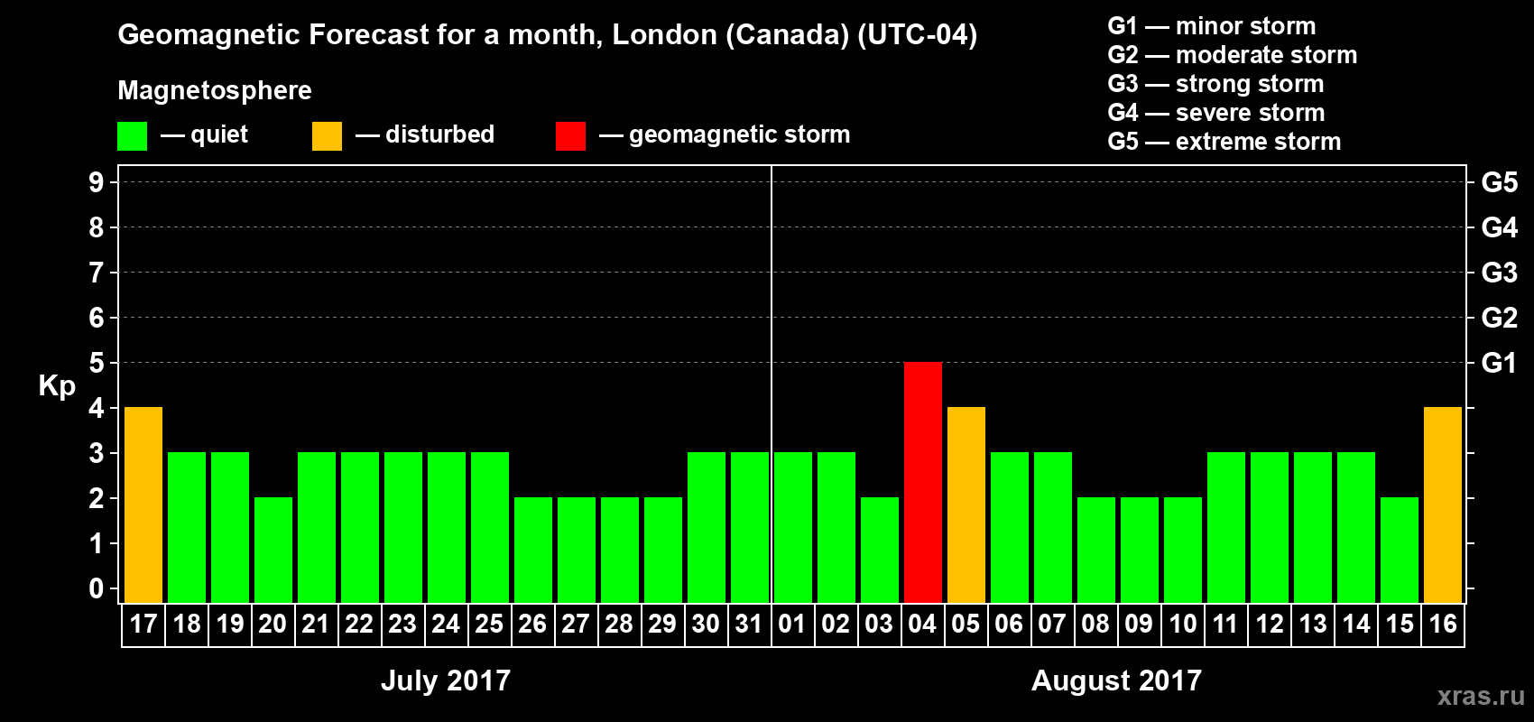 Geomagnetic storm forecast in London (Canada) for Jul 17, 2017
