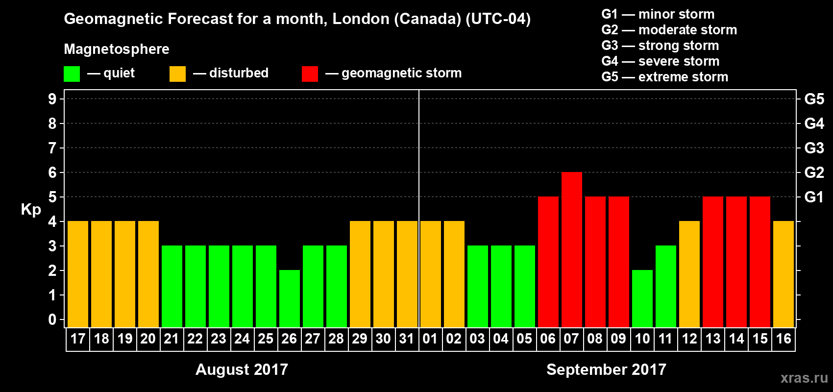 Geomagnetic storm forecast in London (Canada) for Aug 17, 2017