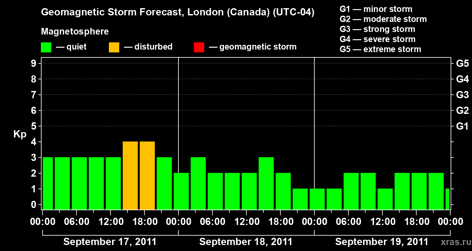 Geomagnetic storm forecast in London (Canada) for Sep 17, 2011