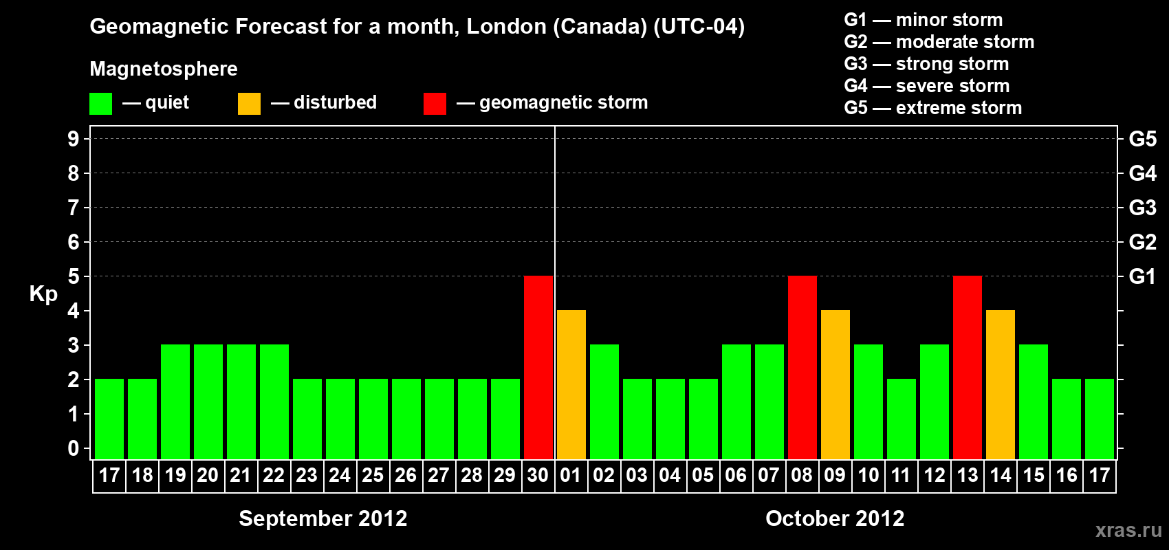 Geomagnetic storm forecast in London (Canada) for Sep 17, 2012
