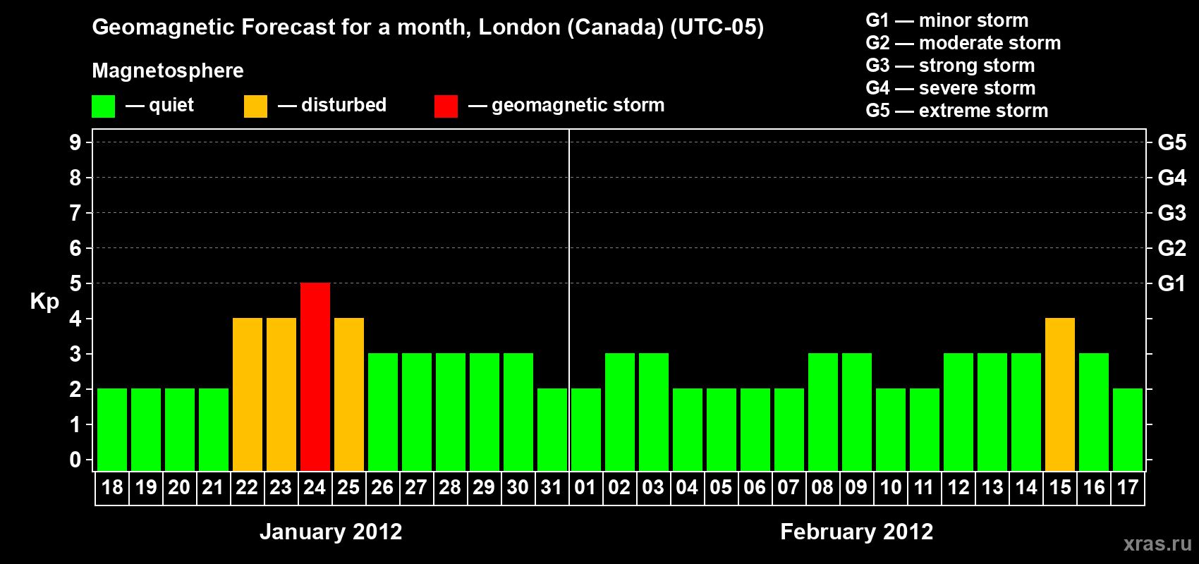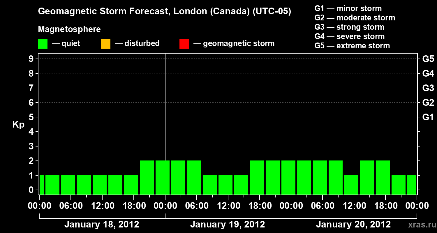 Geomagnetic storm forecast in London (Canada) for Jan 18, 2012