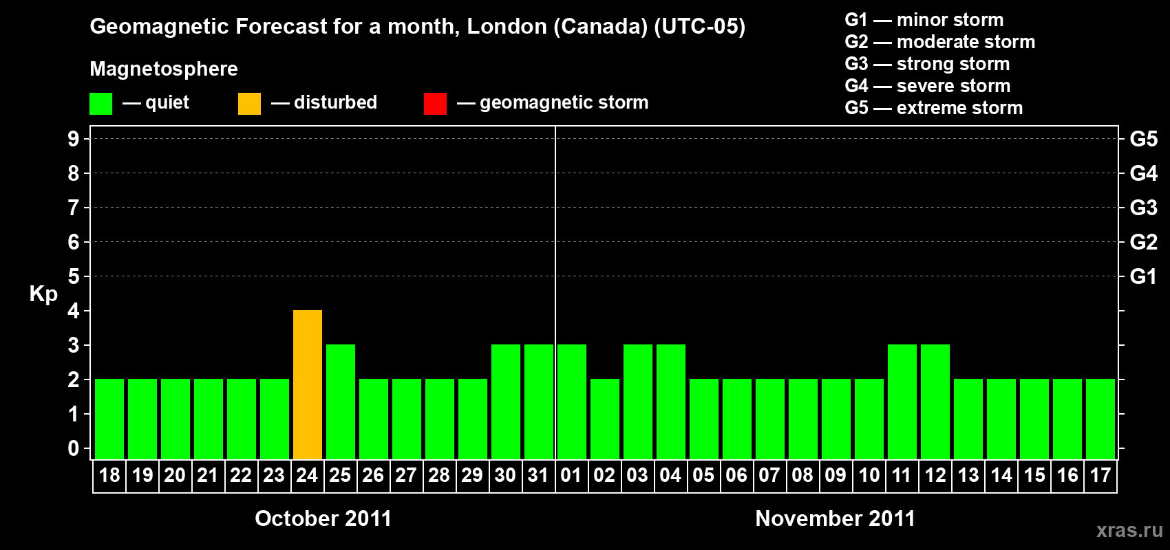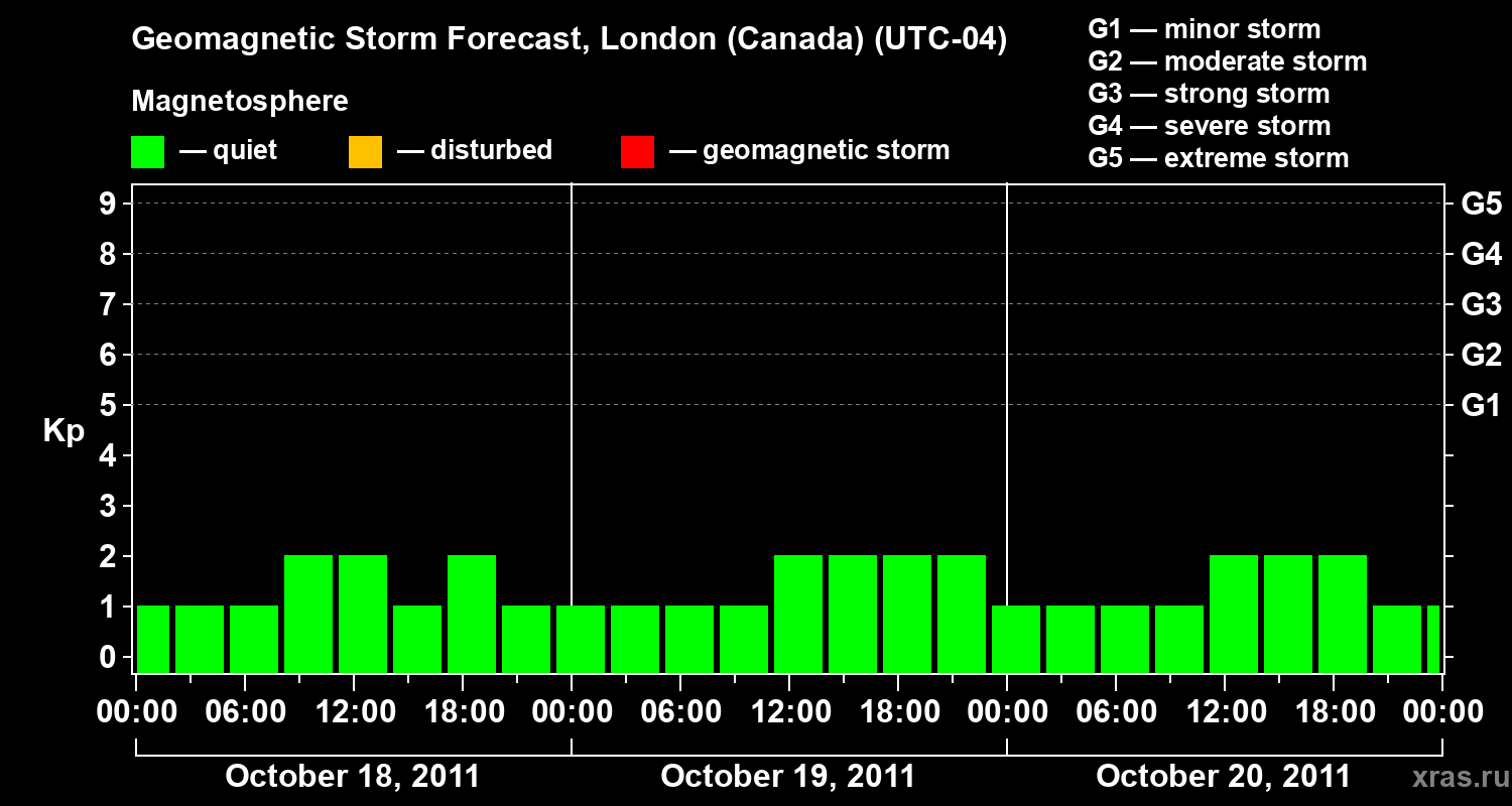 Geomagnetic storm forecast in London (Canada) for Oct 18, 2011