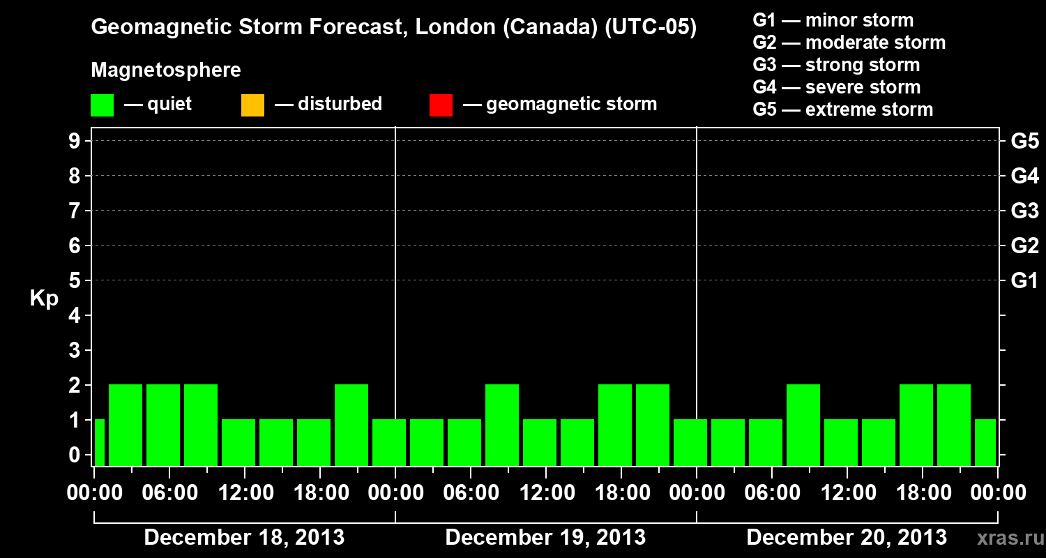 Geomagnetic storm forecast in London (Canada) for Dec 18, 2013